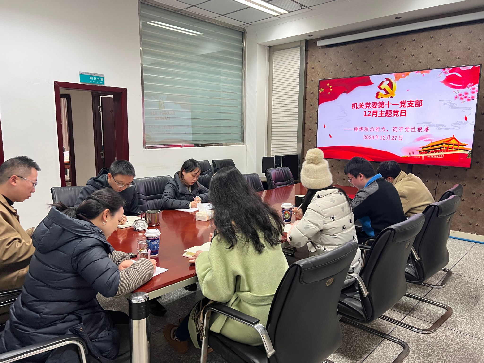2024年12月27日下午,机关党委第十一支部全体党员在计划财务处会议室开展主题为“锤炼政治能力,筑牢党性根基”的月度党日活动。