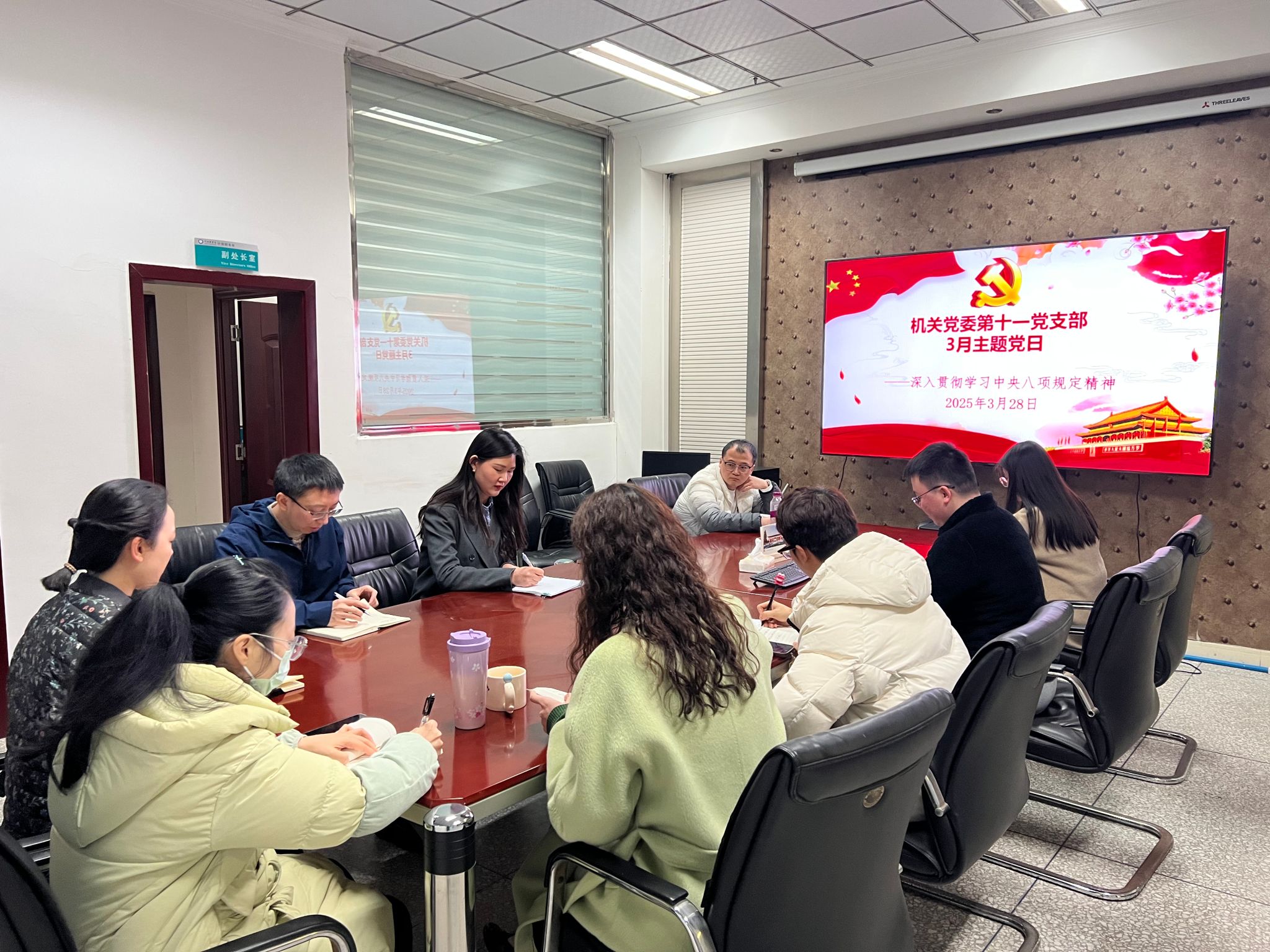 2025年3月28日下午,机关党委第十一支部全体党员在计划财务处会议室开展深入贯彻中央八项规定精神学习教育的主题党日活动。