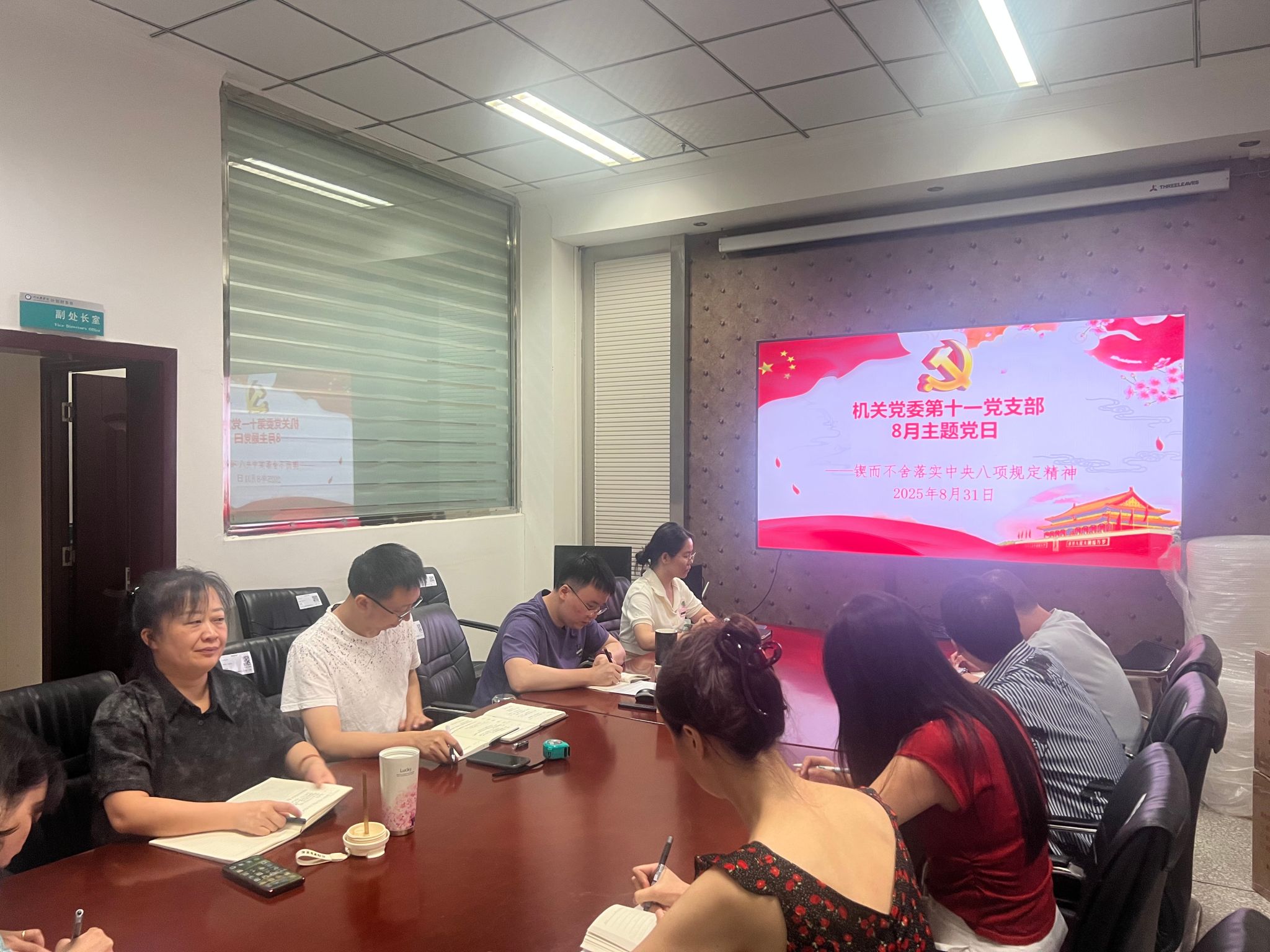 2025年8月31日下午,机关党委第十一党支部在高坪校区图书信息大楼计划财务处会议室组织开展8月主题党日活动,党会的主题是“锲而不舍落实中央八项规定精神”。活动由机关党委第十一党支部书记张莉主持,支部全体党员参加。