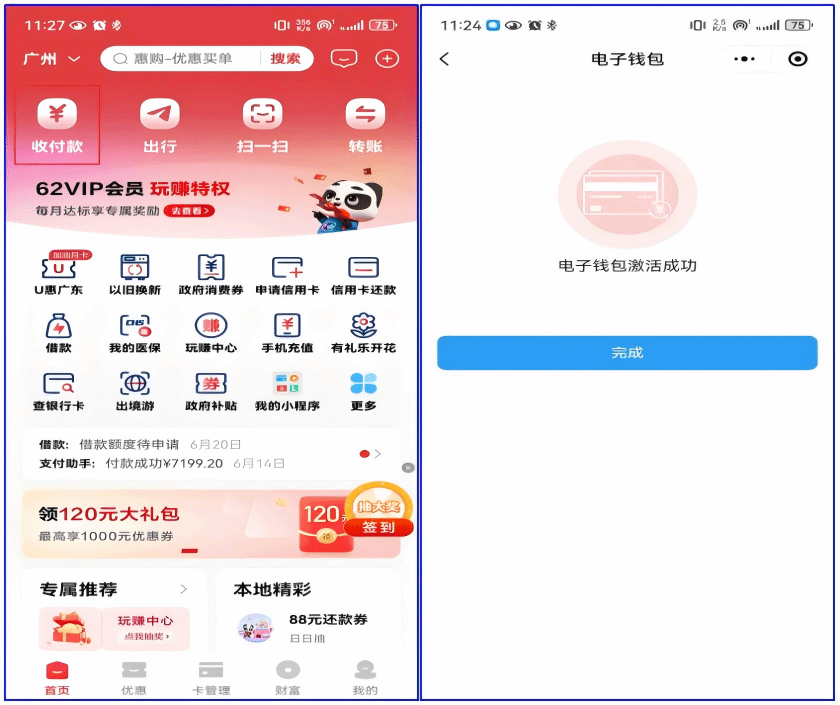 五、云闪付实名认证方式:进入“校园e码通”小程序选择“开通电子钱包”并按流程用本人银联卡开通电子钱包后,即完成“银联实名认证”。