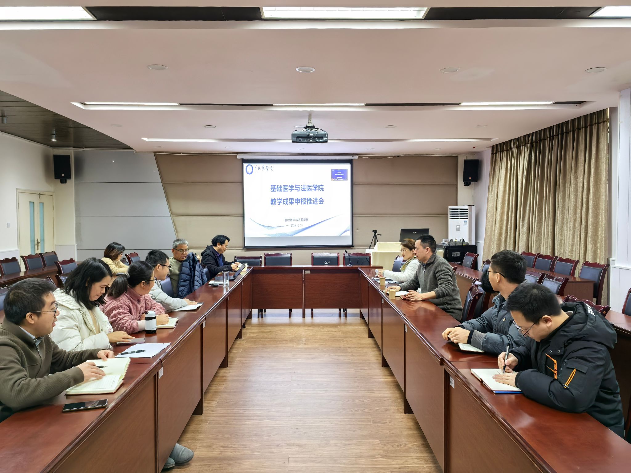 12月25日中午,基础医学与法医学院在学术厅召开了教学成果申报推进会,院系班子成员、学院教学成果申报相关负责人和法医学专业部分教师参加了此次会议,会议由杨健院长主持。