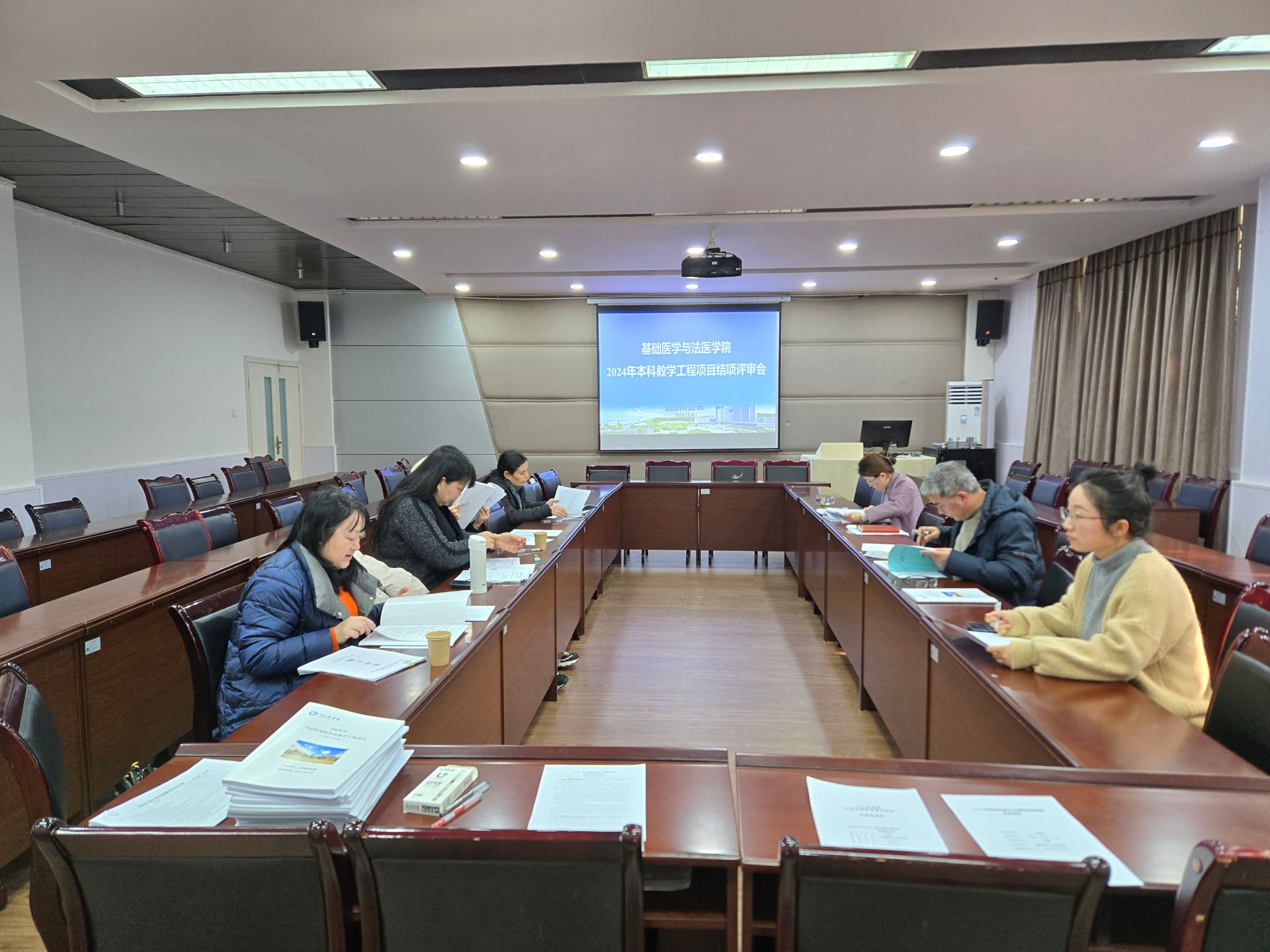 12月31日下午,基础医学与法医学院在部门学术厅举行了2024年本科教学工程结题评审会,学院教授委员会成员担任评审小组,会议由院长杨健主持。