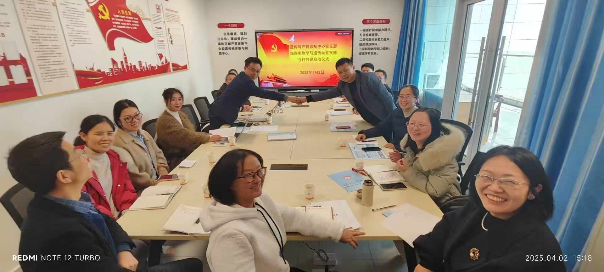 为深入学习贯彻全国两会精神,推动党建与业务深度融合,近日,基础医学与法医学院细胞生物学与遗传学党支部与附属医院遗传与产前诊断中心党支部联合举办支部共建启动仪式暨 “党建引领・医教协同” 主题党日活动。双方支部党员代表、学科骨干及相关部门负责人参加活动,双方围绕全国两会精神学习、党建业务融合开展深入交流。