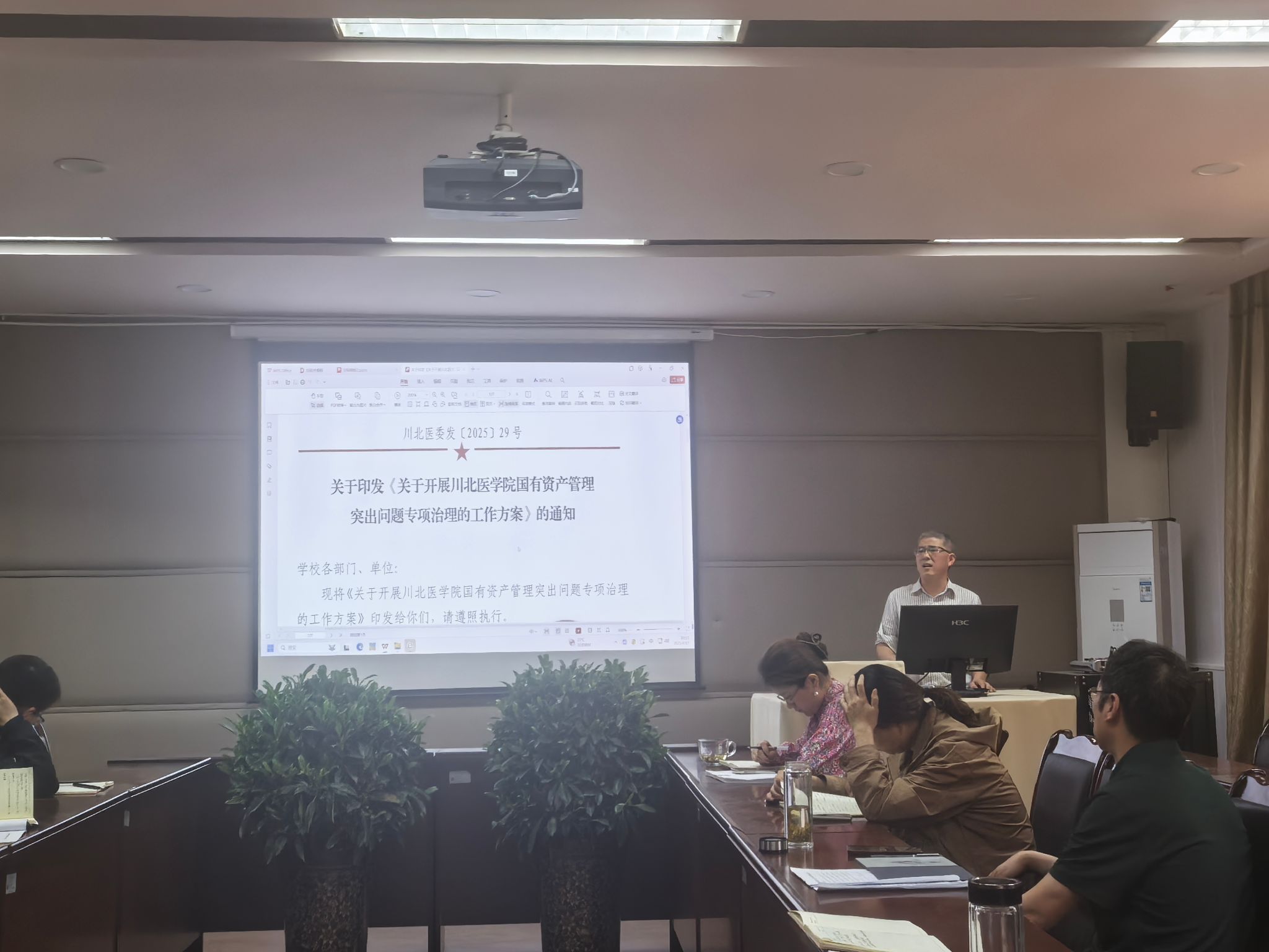会上,杨健首先传达了学校国有资产管理突出问题专项整治工作的文件精神,并结合学院前期搬迁资产清理时发现的突出问题,如资产登记、使用效率、监管机制等方面进行了通报;随后就学院下一步国有资产专项整治工作进行了安排部署。