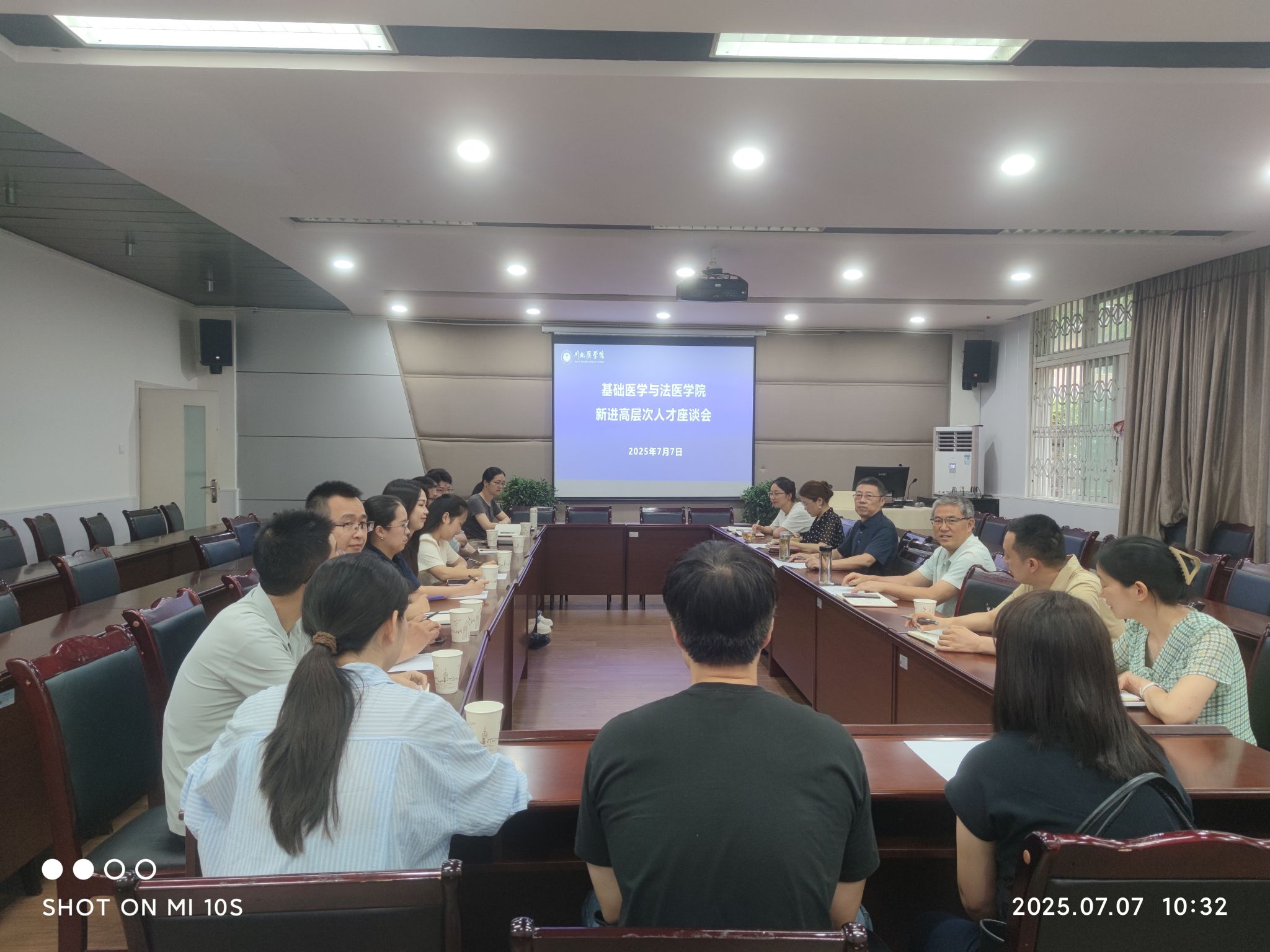 7月7日上午,川北医学院基础医学与法医学院召开新进博士座谈会。党政领导班子成员、部分科室负责人和2025年上半年返校以及新引进的博士青年教师齐聚一堂,围绕职业规划、教育教学和学科发展等内容深入交流。会议由杨健院长主持。