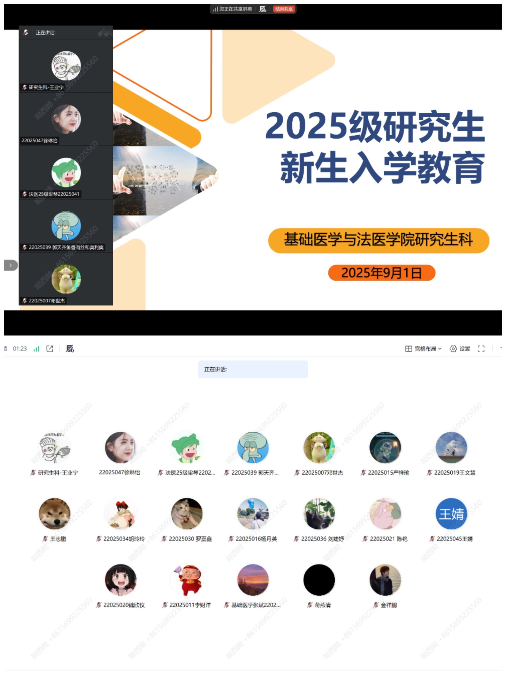 为确保基础医学与法医学院2025级研究生能够快速适应并顺利开启研究生阶段的学习生涯,2025年9月13日下午,基础医学与法医学院在线上开展了2025级研究生新生入学教育。学院领导、导师代表、研究生科人员及2025级全体新生参加会议,会议由副院长汤建才主持。