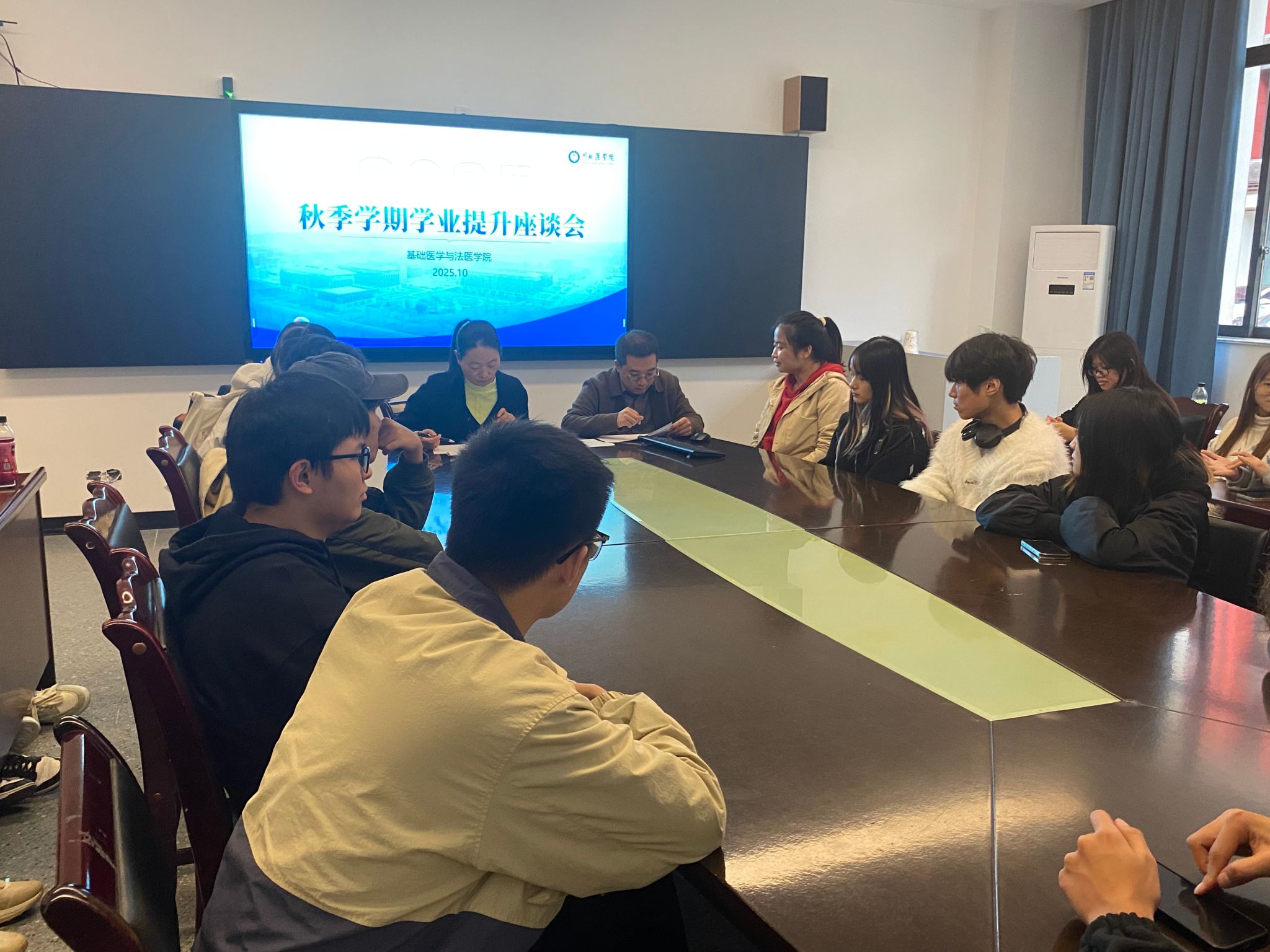 为切实破解学生学业难题,提供针对性指导,近日,基础医学与法医学院在学院会议室开展2025年秋季学期学业提升座谈会。学院党委副书记胡铭峡、专业教师代表、辅导员以及学业困难学生参加会议。