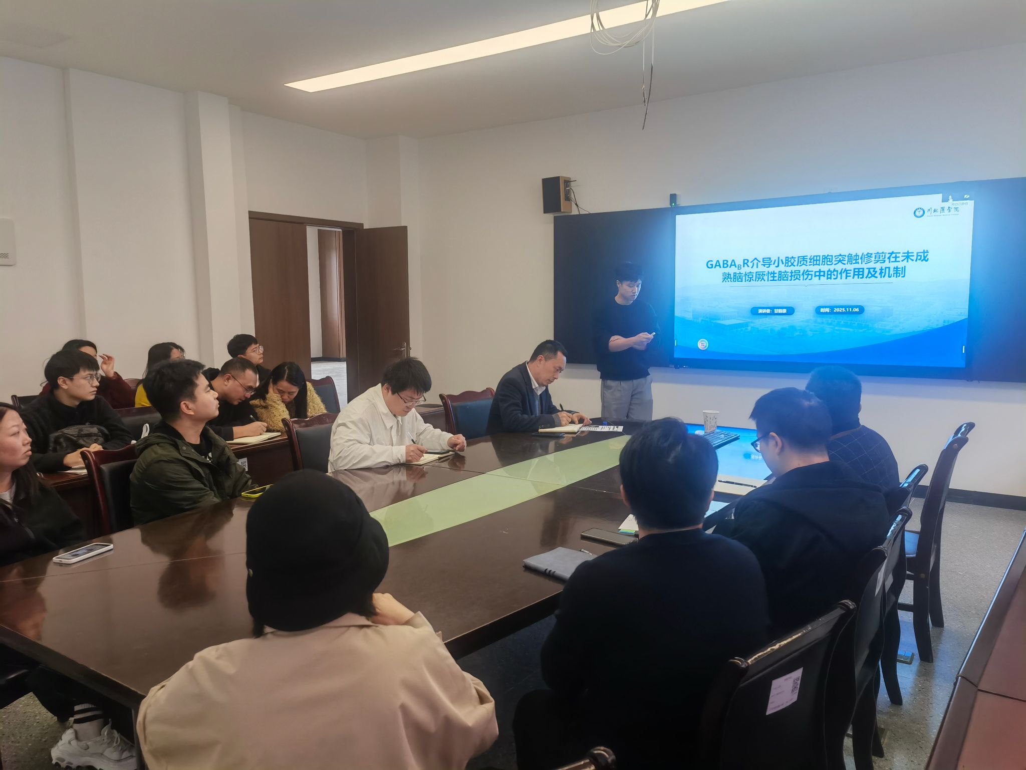 2025年11月6日下午,病理学与病理生理学教研室甘韵豪博士通过线下线上相结合方式为我院师生做了题为“GABABR介导小胶质细胞突触修剪在未成熟脑惊厥性脑损伤中的作用及机制”的学术报告。本次报告由副院长汤建才主持,共计50余名师生参加了本次学术讲座。