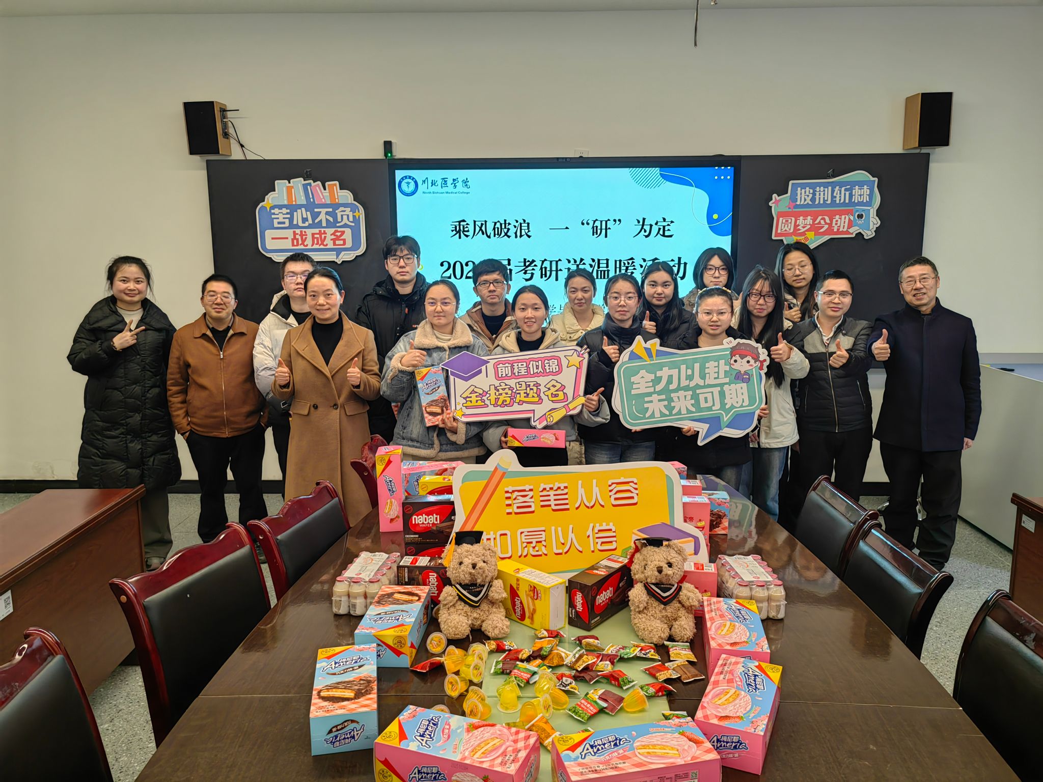 为帮助考研学子缓解备考压力、驱散冬日寒意,坚定冲刺信心,近日,基础医学与法医学院在松林书院一号楼会议室开展“乘风破浪 一‘研’为定”考研送温暖活动。学院领导、专业教师及全体辅导员参会,为即将奔赴考场的学子们送上暖心关怀与真挚祝福。