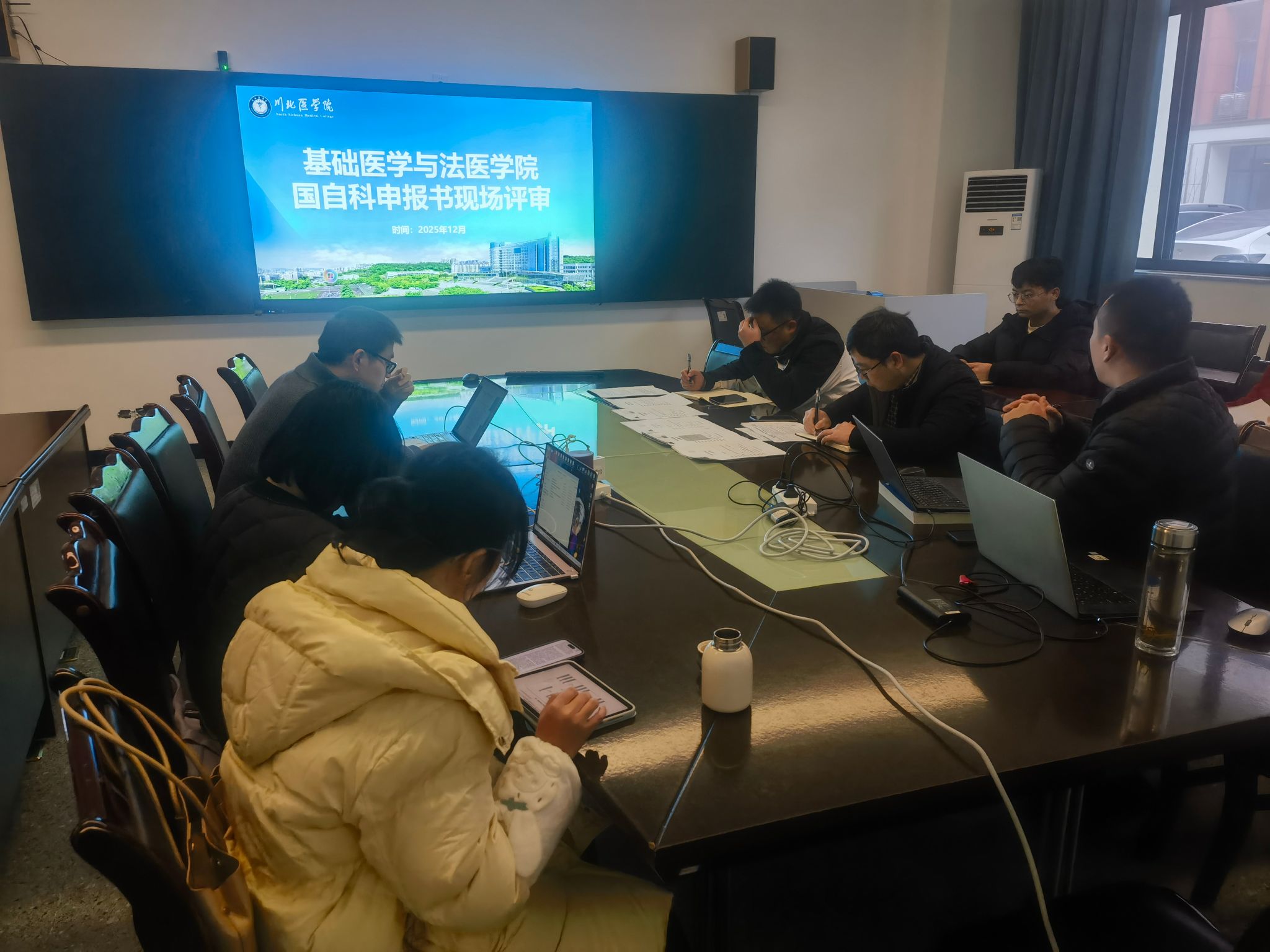 为进一步做好2026年度国家自然科学基金项目申报工作,巩固第一轮评审成果,基础医学与法医学院于12月25日组织召开国家自然科学基金申报现场评审会。会议由学院副院长汤建才主持,特邀川北医学院科技处副处长吴昌强、项目管理科鲜鹏杰博士,以及本院副院长宋桂芹、研究生科科长母波、陈茜茜博士、阳玉兰博士和向聪博士组成评审专家组,对8位青年博士的申报书进行了专业指导与深入点评。