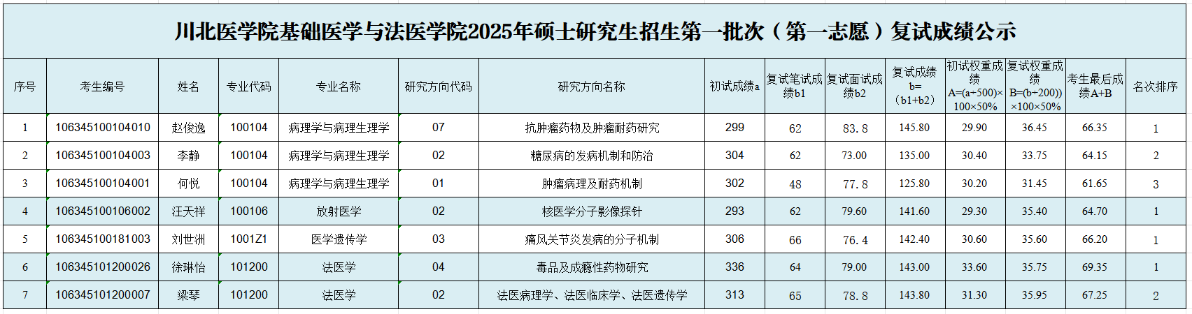 若对公示结果有异议,请于公示之日起1日内向基础医学与法医学院研究生科进行申诉,联系电话:0817-3352015,联系人:王老师。
