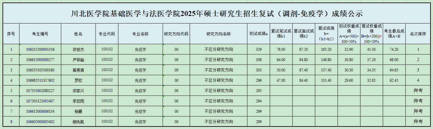 若对公示结果有异议,请于公示之日起1日内向基础医学与法医学院研究生科进行申诉,联系电话:0817-3352015,联系人:王老师。