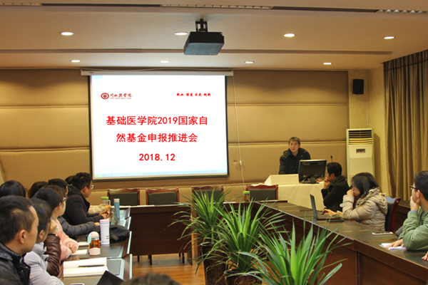 为了更好地提高科研人员申报国家自然科学基金项目的积极性,12月13日下午,基础医学院在本院学术厅召开了2019年国家自然科学基金项目申报工作推进会。会议由基础医学院副院长杨健主持,基础医学院院长文彬、科技处处长邓世山、基础医学院具有博士学位及近三年新晋高级职称的骨干教师参加了会议。