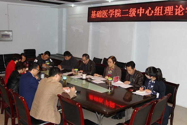 10月19日,基础医学院党总支召开二级中心组理论学习会。会议由总支书记殷秀主持,部门副科及以上干部、各支部书记参加了会议。