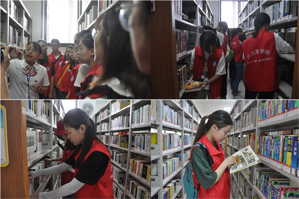 在图书馆馆导游的带领下,志愿者们走近了散发着墨香的知识殿堂。即使外面酷热难耐,但图书馆内却感受不到一丝的浮躁与功利,人们沉浸在知识的海洋里,隔绝在尘世的喧嚣中。志愿小分队也感受着这份知识带来的安宁与祥和。惊鸿一瞥最是惊艳,一丝不苟最是动人。在图书馆工作人员作出讲解和示范后,队员们很快掌握了图书整理技巧,把归还的图书及时上架,将杂乱的书籍排放整齐。