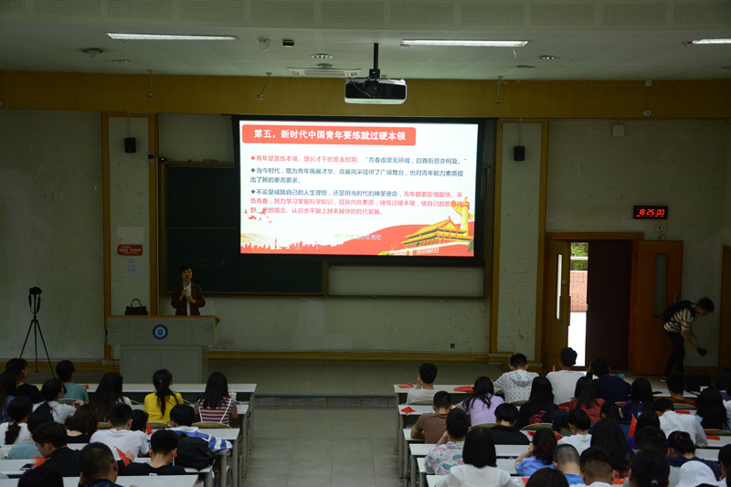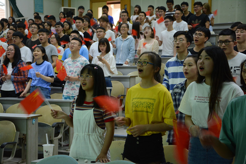 活动伊始,辅导员向同学们介绍了五四运动的历史价值和意义。那是一场救亡图存的全民族革命运动,以磅礴之力鼓动中华儿女实现民族复兴的志向和信心。五四运动以其浩气长存的精神影响着一代又一代的青年。在辅导员老师的剖析解说中,追求真理、追求进步的伟大觉醒和永久奋斗的伟大传统在莘莘学子的心中扎根发芽。习近平总书记在五四运动100周年到来之际,特别向广大青年提出了六点希望:新时代中国青年要树立远大理想、新时代中国青年要热爱伟大祖国、新时代中国青年要担当时代责任、新时代中国青年要勇于砥砺奋斗、新时代中国青年要练就过硬本领、新时代中国青年要锤炼品德修为。青年大学生只有明确天将降大任于斯人的时代使命,才能奋发图强、不辞艰辛,为全面建成小康社会,实现民族复兴的伟大中国梦添砖加瓦。伴随着《歌唱祖国》雄壮的乐曲,全体师生齐声歌唱美丽的祖国。唱响了新时代的祖国赞歌,抒发了浓浓的爱国情怀,唱出了昂扬的奋斗激情。