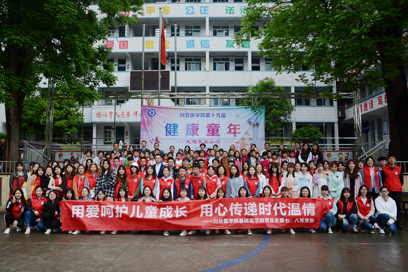 传承志愿精神,弘扬时代新风,引领青年学生青春心向党,建功新时代。 5月7日,川北医学院传统品牌活动“健康童年”志愿服务活动走进李家小学如期开展。活动由基础医学院2017级承办,学校团委社会实践科李壹凡老师、基础医学院全体辅导员和八十余位学生志愿者奔赴李家小学共同参与了此次活动。