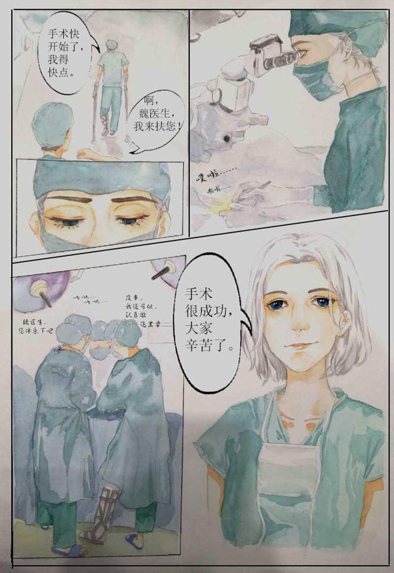 在本次比赛中,来自不同院系、不同年级的同学积极投稿,以漫画的形式将自己对医德的理解表达出来。作品中,有色彩淡雅的水粉插画,表现了医生这一职业的圣洁、无私;有妙趣横生的四格漫画,通俗易懂,体现了当代医学生对医德医风的理解;还有讲述感人医学故事的插图,用绘画的笔触描绘了医生工作的艰辛与神圣。不仅展示了医学的趣味性,加深了对医德的了解,更是从不同的角度诠释了医德的含义。最后,18级临床13班的田奕洋同学和18级口腔5班的田雨竹同学共同创作的《行医一时,鞠躬一生》夺得了本次比赛的一等奖。