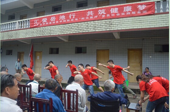 为落实实践科学发展观和践行社会主义核心价值观,发挥当代青年党员的先锋模范作用,基础医学院党总支2012级党支部组织了学生党员骨干,前往广安岳池开展了以“汇爱岳池行,共筑健康梦”为主题的社会实践活动。