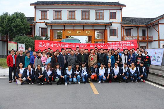 师生共近百人,一大早分别在顺庆和高坪校区集中上车,大约10点到达目的地邓小平故居,按照既定议程,全体师生参观了小平故居,在师生相互问答中重温了部分历史,回忆了伟人的成长历程;参观之后,大家又来到邓小平铜像广场,在这里,学生党员举行了庄严而又肃穆的宣誓活动。下午在牌坊村,师生党员一起学习了十八届四中全会精神,基础医学院党总支副书记林锋带领大家共同学习了《中共中央关于全面推进依法治国若干重大问题的决定》以及习总书记关于《中共中央关于全面推进依法治国若干重大问题的决定》的说明。师生很是认真,过程中有不少提问,大家现场做了讨论和交流。这次特别的组织生活受到了师生的一致认可,有师生就说“在伟人铜像前宣誓,心如澎湃……到了牌坊村看到新农村的建设,我们更加坚信了永远跟党走的决心”