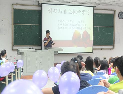 5月29日晚,基础医学院在我院高坪校区图书信息大楼102教室举行了“科研与自主探索学习”专题交流会。基础医学院副院长陈建业、解剖教研室刘尚清、组胚教研室赵圆宇三位博士作为主讲应邀出席,多位老师及300多名低年级临床的学生参加了交流会。