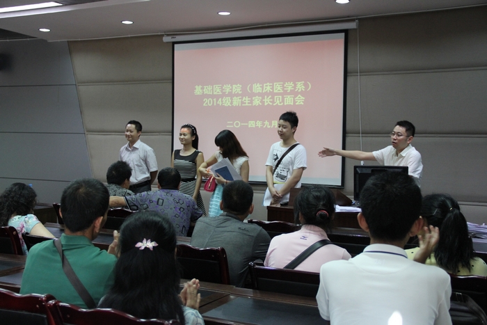 9月5日下午4点,基础医学院在学术报告厅召开了新生家长见面会,来自各省的家长代表约60多人参加了见面会,见面会由基础医学院大一学生科科长代成书主持。