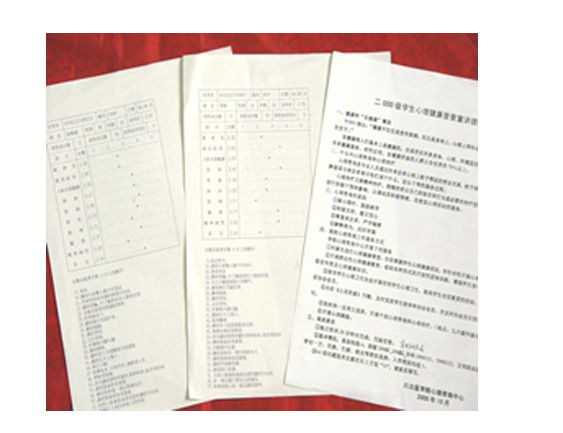 为了了解我校每年新生的心理健康状况, 1997年至今学校坚持每年对新生开展拉网式心理普查。通过大学生人格测试(UPI)和90项症状自评量表(SCL-90)等问卷调查,对从新生中排查出有严重心理问题的学生给予紧急干预,并建立档案,进行跟踪教育;对需要心理援助的学生提供心理咨询、治疗服务,做到早预防,早发现,早干预。