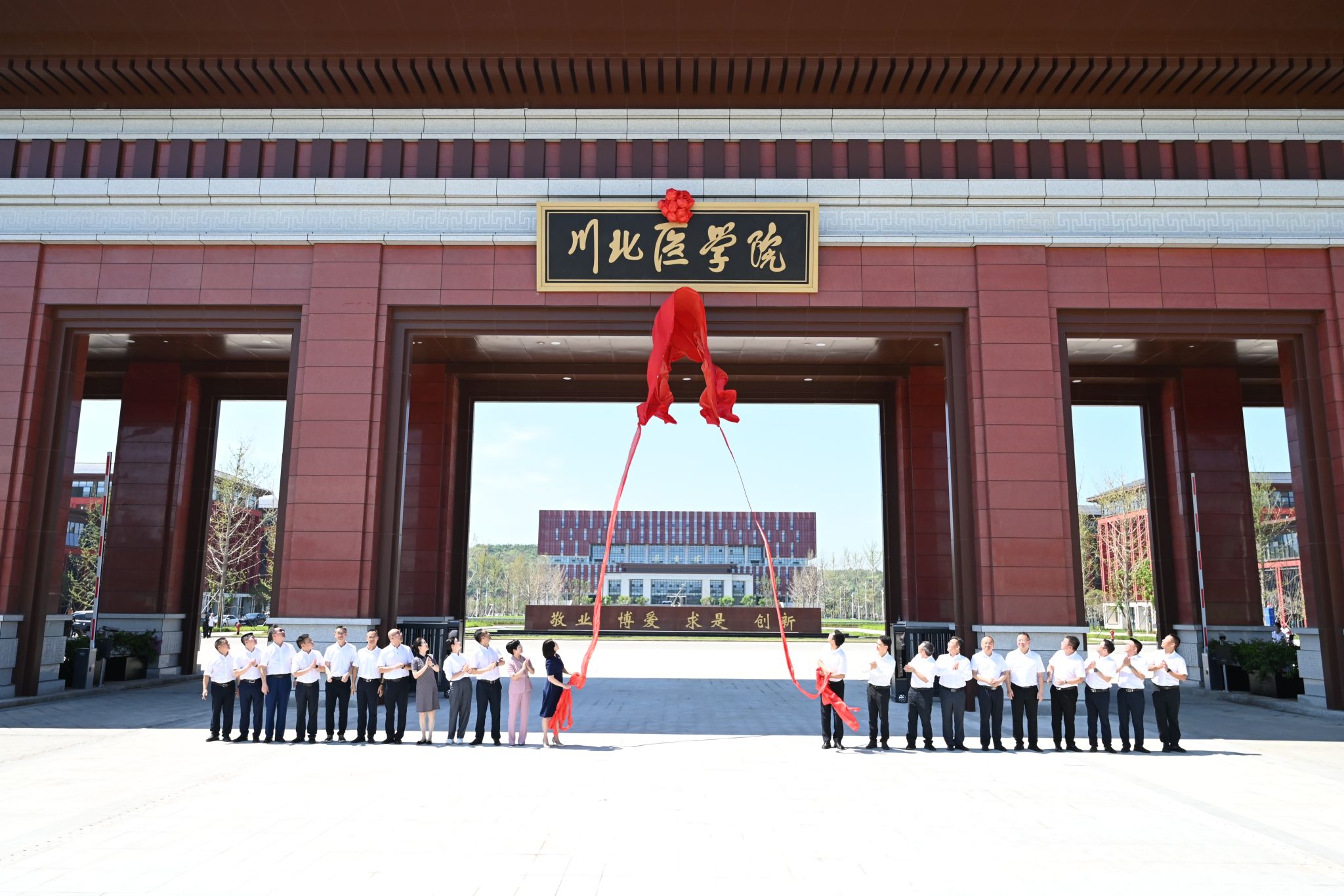 仪式结束后,廖雪梅、古熙等市校领导共同为川北医学院新校区揭牌。