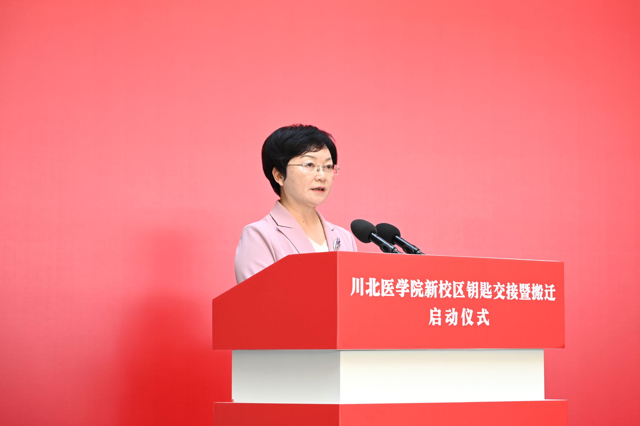 廖雪梅宣布川北医学院新校区建成投用。