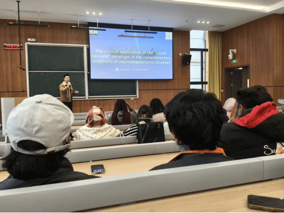 为持续推进留学生精神病学课程体系建设,12月9日下午,精神卫生学院青年教师马文博博士在莲池书院南-201教室,为来自印度、巴基斯坦等国的40余名留学生成功开设了一门全英文心理学、精神病学科研前沿课。本次课程以“‘视觉-眼跳’范式:从神经机制到疾病诊断的转化探索”为主题,深度融入学院正在构建的“理论-技术-临床-科研”四位一体创新课程模块。