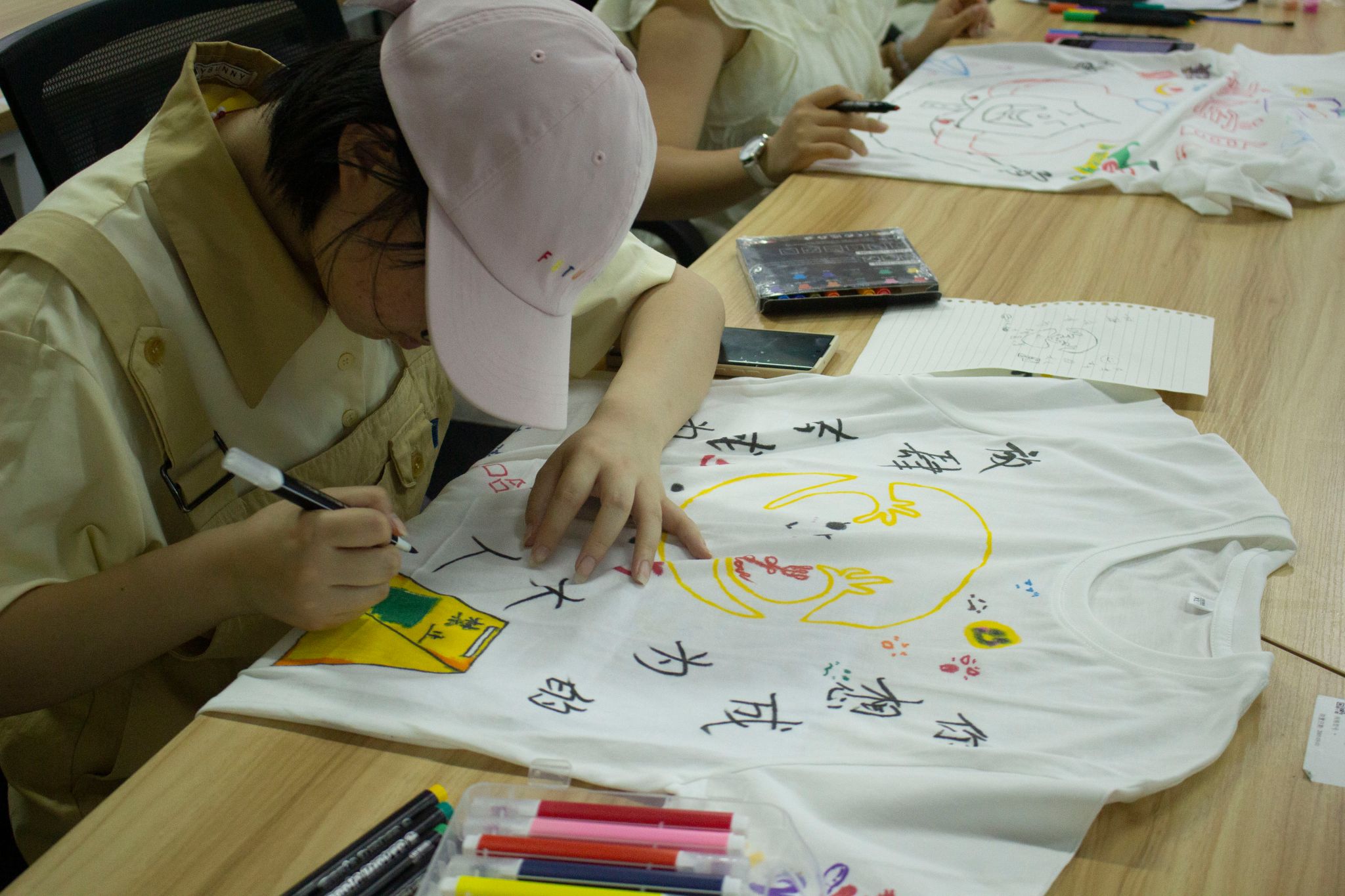 活动现场,同学们以白色T恤为画布,用颜料和创意描绘出属于自己的心灵图景。有的作品充满治愈元素,如阳光、绿植和笑脸;有的则通过抽象线条和色彩表达情绪;还有同学书写励志短句,传递温暖力量。在轻松愉快的氛围中,大家互相交流创作灵感,分享对心理健康的理解。“绘画是一种无声的表达,能让我静下心来梳理情绪。”参与活动的田同学表示,“和朋友们一起创作,既放松又有意义。”