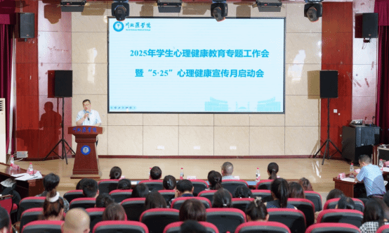 2025年5月12日下午,川北医学院与巴中市携手在高坪校区图信楼407召开2025年学生心理健康教育专题工作会暨“5·25”心理健康宣传教育月启动会议。会议由学生工作部部长王帅亭子主持,校党委副书记黄平、巴中市教育局代表、各院系学生工作负责人及全体辅导员出席会议。会议总结了过去一年心理健康教育工作成果,部署了新一年重点任务,并正式启动了心理健康宣传教育月活动。