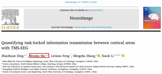 近日,我院教师马文博在神经科学领域中科院1区top期刊《Neuroimage》上发表了题为“Tuantifying task-locked information transmission between cortical areas with TMS-EEG”的研究论文 (Ding, Ma et al. 2025)。马文博老师为论文的共同第一作者。该研究由我院马文博老师与华南理工大学丁兆环合作完成,北京师范大学张鸣沙教授、华南理工大学李小俚教授对该工作进行了指导。