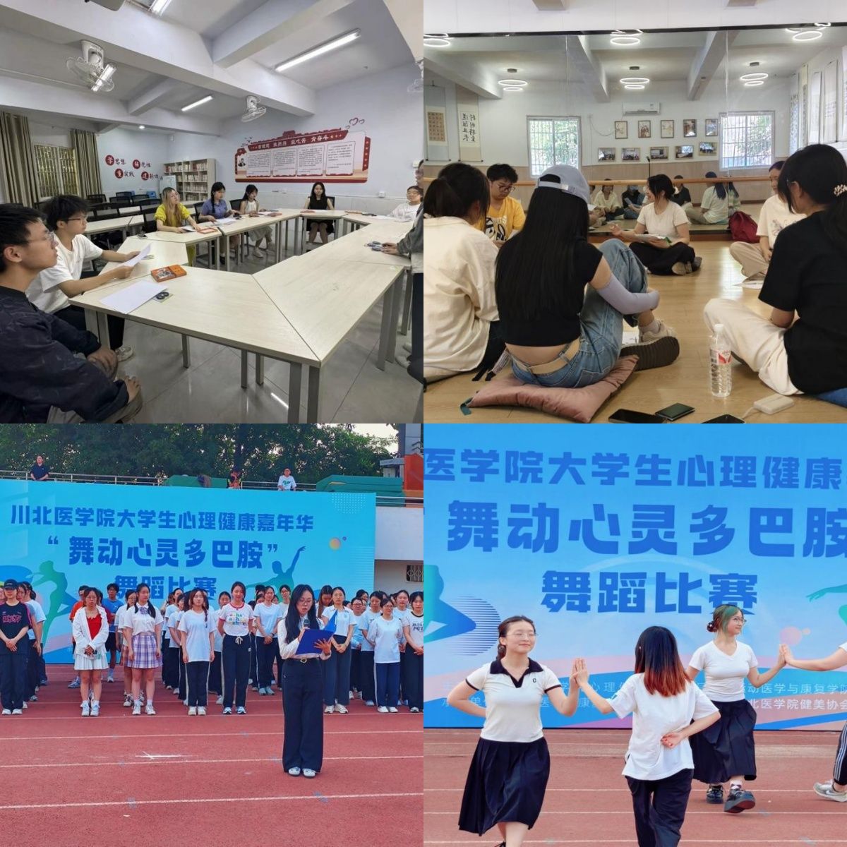 以美润心,用美的元素滋养心灵,塑造心灵,促进全面发展。口腔医学院在 4-5 月承办“心灵光影绘彩赛”活动,通过摄影、绘画等艺术形式,将情绪、感受可视化。临床医学院同期承办办“心理情景剧大赛”,以艺术创作与表演为载体,解码青春情绪、传递心能量。