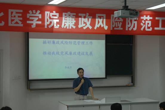 9月8日下午,学校在顺庆校区203教室召开川北医学院廉政风险防范工作会议,全体校领导出席了会议,学校纪委委员、副科以上干部、人大代表、政协委员、教师代表等参加了会议。