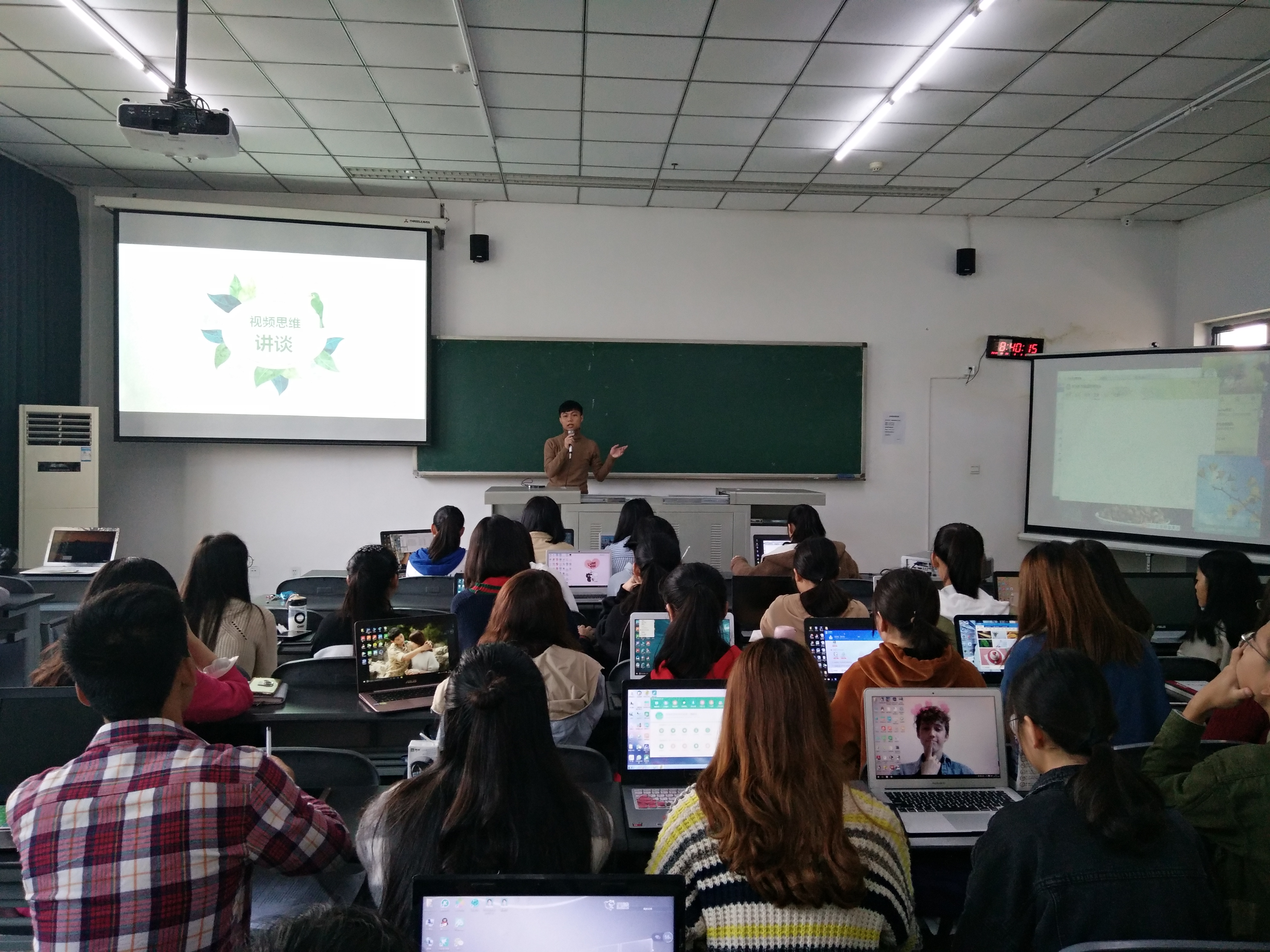林先钦先讲解了视频制作构思及注意事项,随后花茂琦同学与刚鑫同学分别为学员讲解了“AE”与“会声会影X5”软件的安装与使用方法,最后林先钦详细讲解了“WORD的使用技巧”并向学员布置了练习作业。