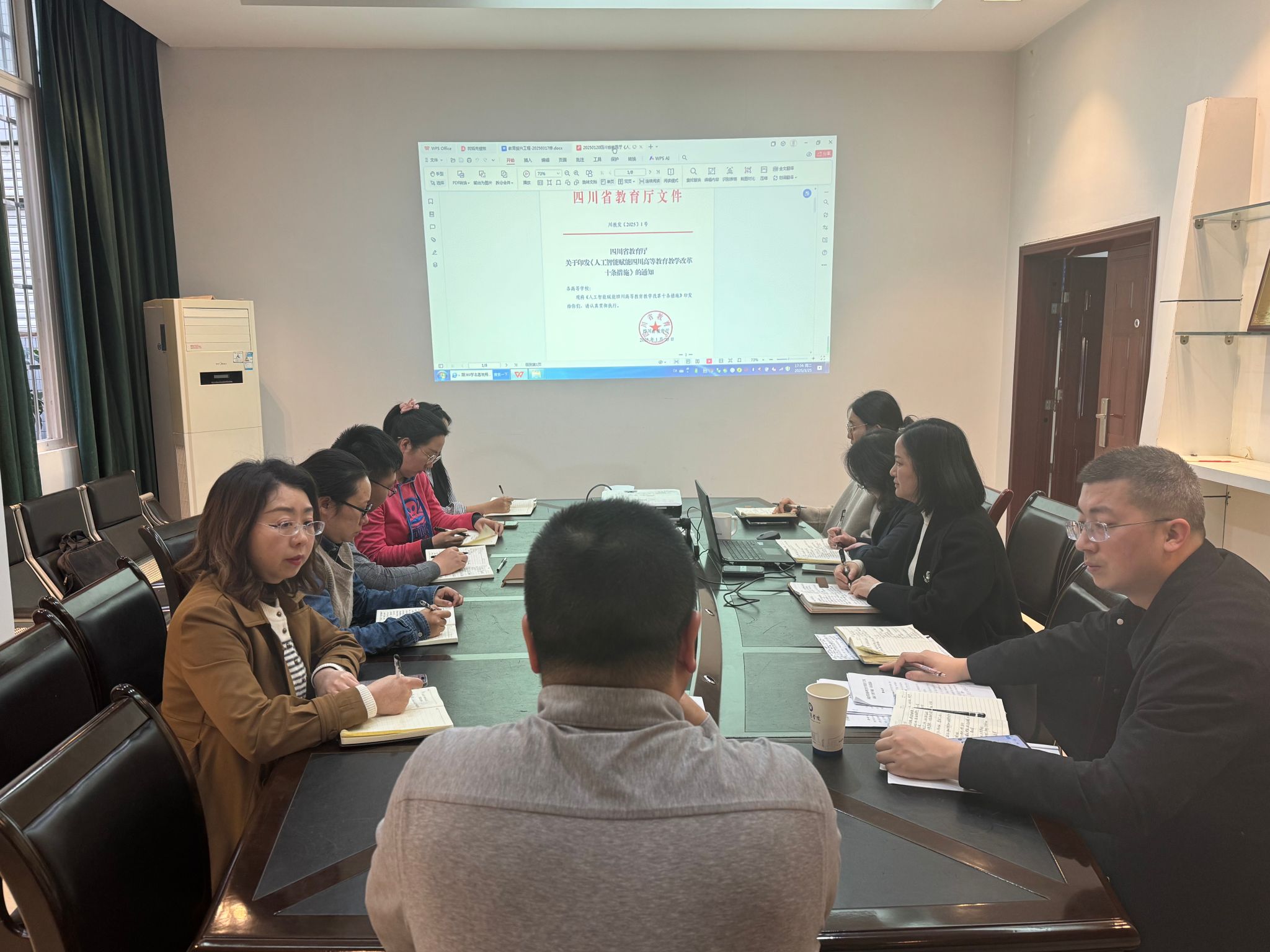 会上,金波领学了《关于进一步深化医教协同加强临床医学人才培养的意见》《人工智能赋能四川高等教育教学改革十条措施》《关于大力推进应用型本科高校建设发展的指导意见》《关于印发医学人文关怀提升行动方案(2024-2027年)的通知》《四川省全面加强和改进新时代学校国防教育工作的实施细则(试行)》等文件,传达了近期最新的教育方针政策,并对重点指标进行了解读。他指出,全体干部要及时学习教育教学相关重要文件,更新知识储备,主动对标新时代高等教育发展要求,增强前瞻性和系统性思维,为教学管理提质增效夯实基础。