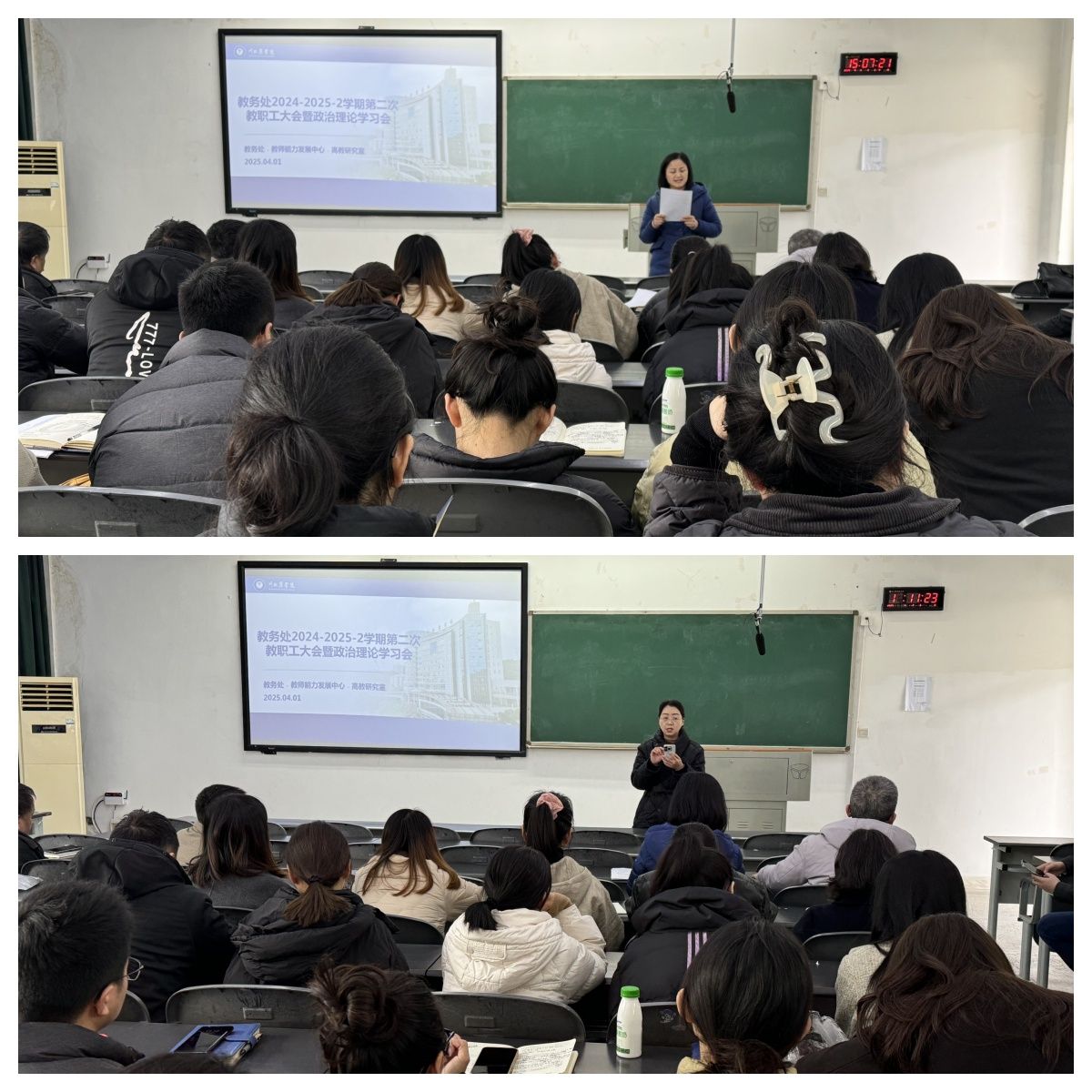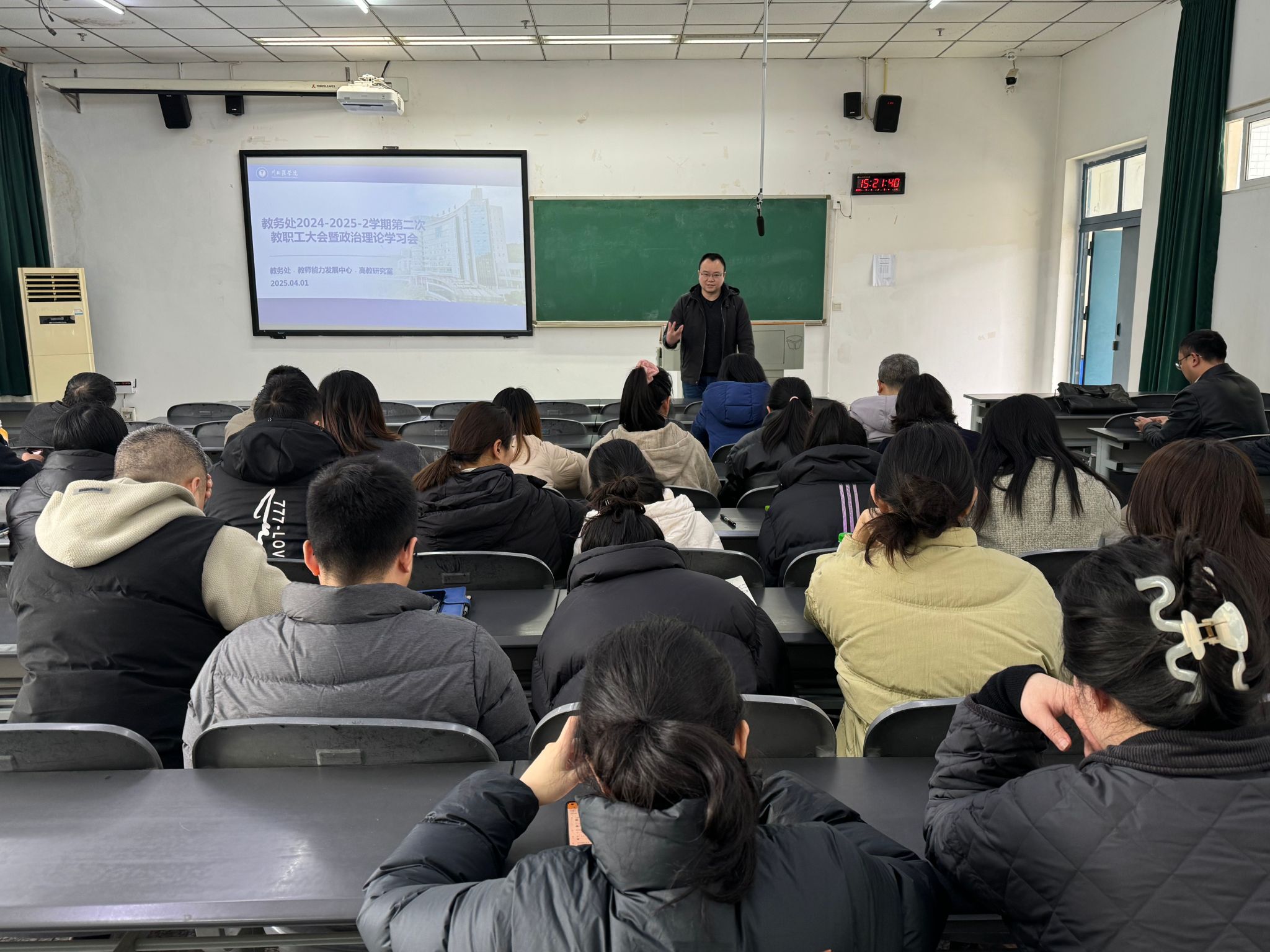 4月1日下午,教务处在图书信息大楼303教室组织召开2025年度第二次全体教职工大会暨政治理论学习交流座谈会。教务处全体教职工参会,副处长金波(主持工作)主持会议。