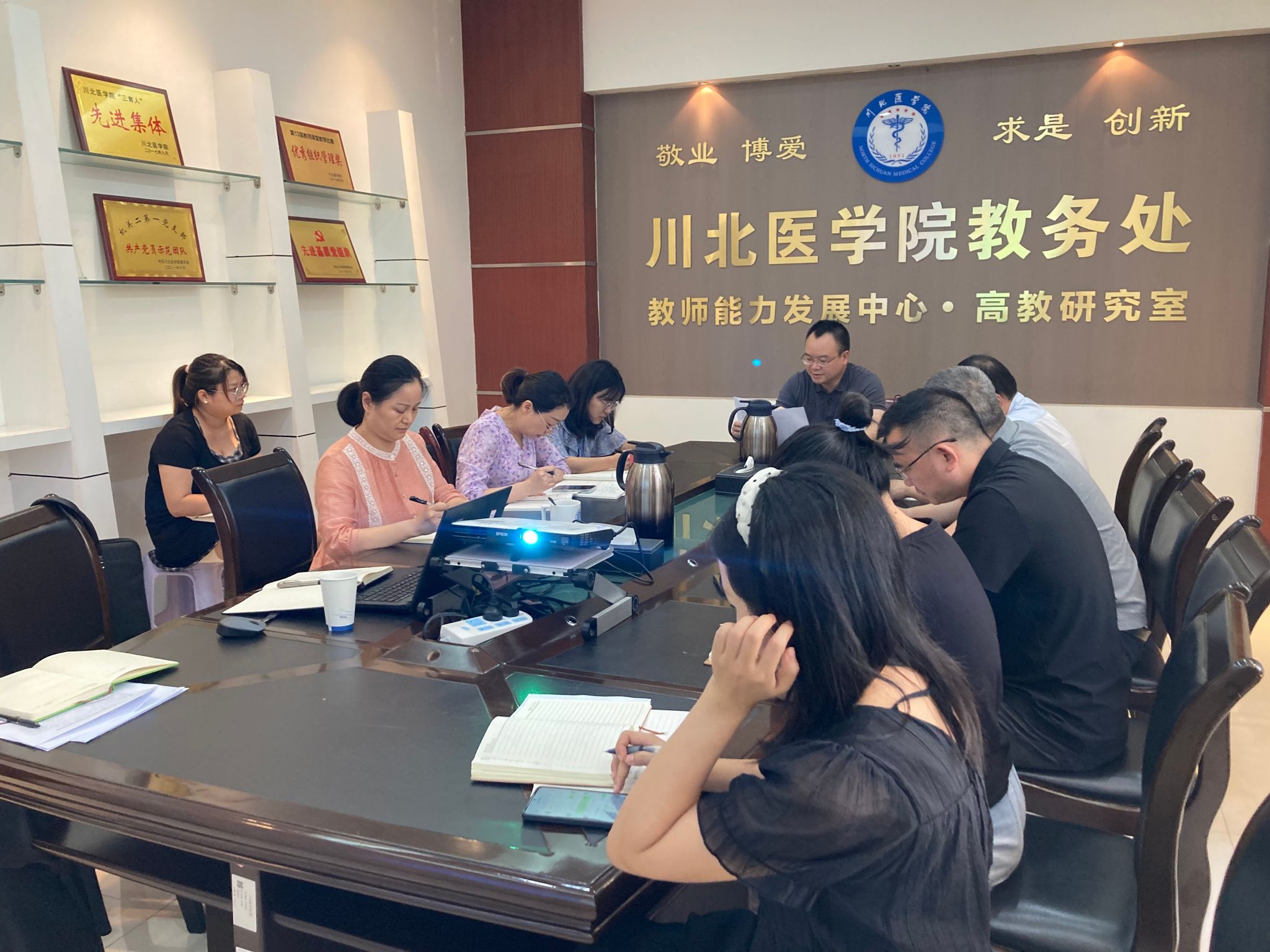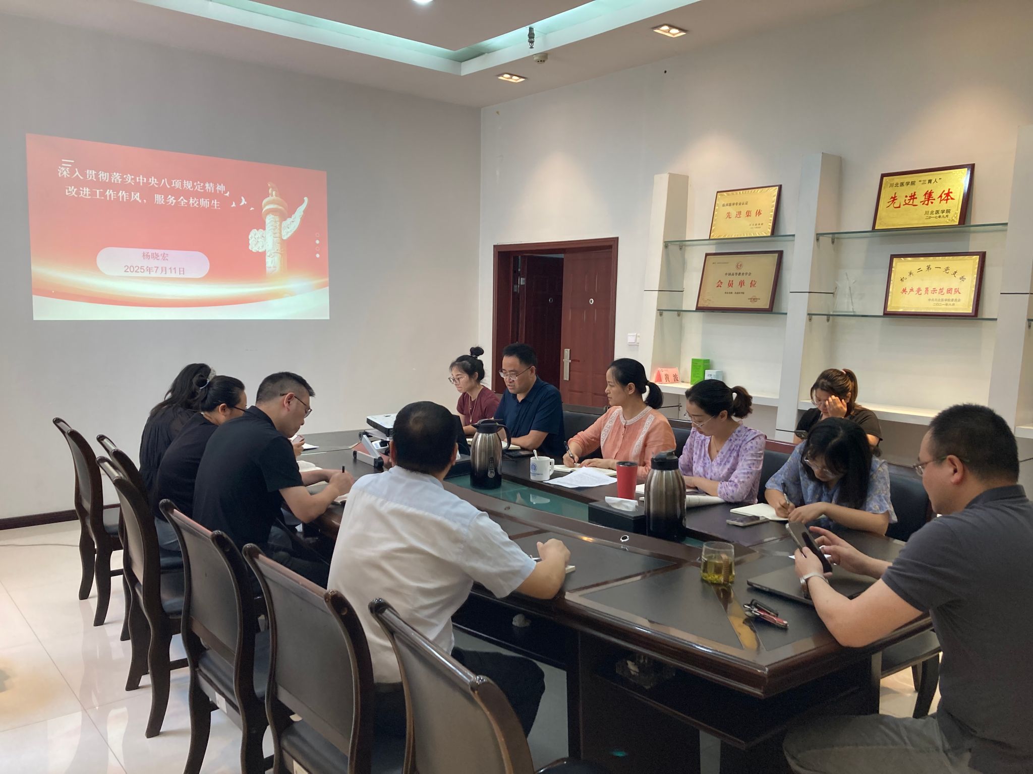 7月11日下午,机关第十三(教务处、双创学院)党支部在教务处会议室举行7月主题党日活动,围绕“深入学习中央八项规定精神,从抓作风入手推进全面从严治党”这一主题开展集中学习和专题研讨。支部书记金波同志主持,支部全体党员、1名副科级干部及入党积极分子现场参会。