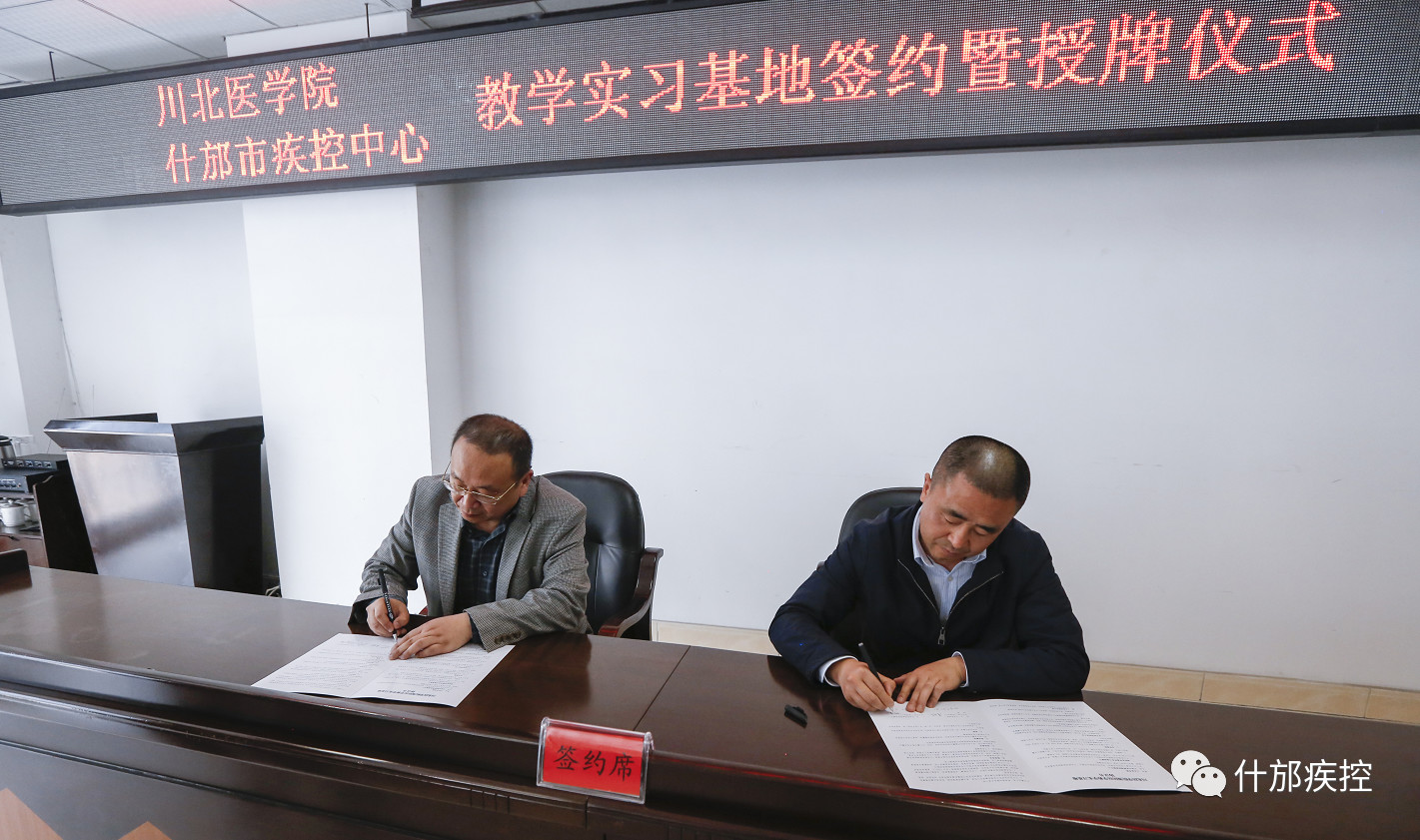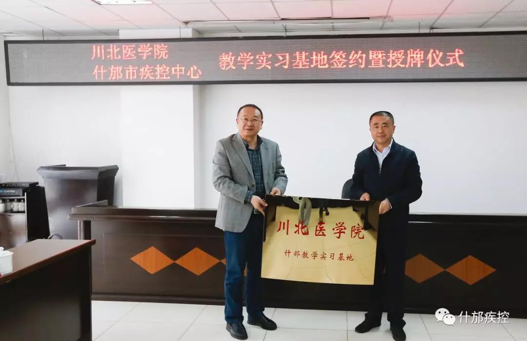双方签订了《川北医学院与什邡市疾控中心教学实习基地共建协议》,并举行了授牌仪式。