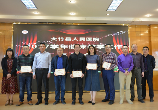 会前,大竹县人民医院举行了临床教学授课比赛,共有10名临床带教老师参加比赛。比赛邀请到了川北医学院附属医院教务部部长刘剑平、成都医学院基础医学院原病原学教研室主任李晋川、成都军区总医院和简阳市人民医院的专家老师担任评委。比赛中,参赛教师们运用多媒体,结合生动典型的临床病例,将理论教学与临床实践相结合,深入浅出,展示了各自的教学风采,受到了评委及学生代表的一致好评。最终,经过激烈角逐,谢植宇获得比赛一等奖,邹松、邓春梅获得二等奖,唐洵、王誉峰、郝利获得三等奖。