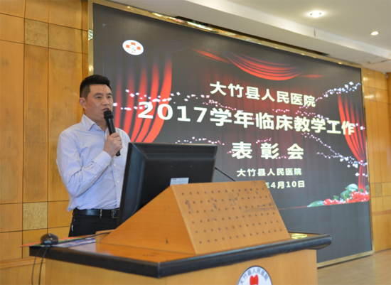 四川新闻网达州4月12日讯(钟召兵 黄天书)4月10日上午,大竹县人民医院召开2017学年临床教学工作表彰大会,向在临床教学工作中涌现出的先进科室、优秀带教老师和优秀实习生以及在临床教学授课比赛中获得前三名的带教老师进行颁奖。大竹县人民医院党委书记、院长杨明坤出席表彰大会并致辞。
