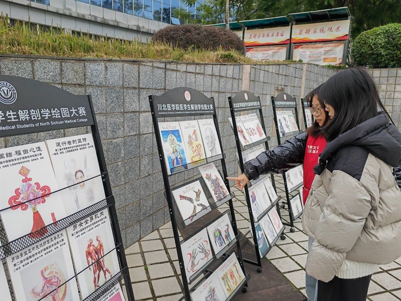 11月29日,由健康文化普及基地主办的“解剖绘画作品展示”科普活动在川北医学院高坪校区图信楼广场举行。此次活动旨在激发医学生对人体结构的探索精神,提升学生艺术人文修养,同时夯实医学基础知识,推动健康文化的普及。