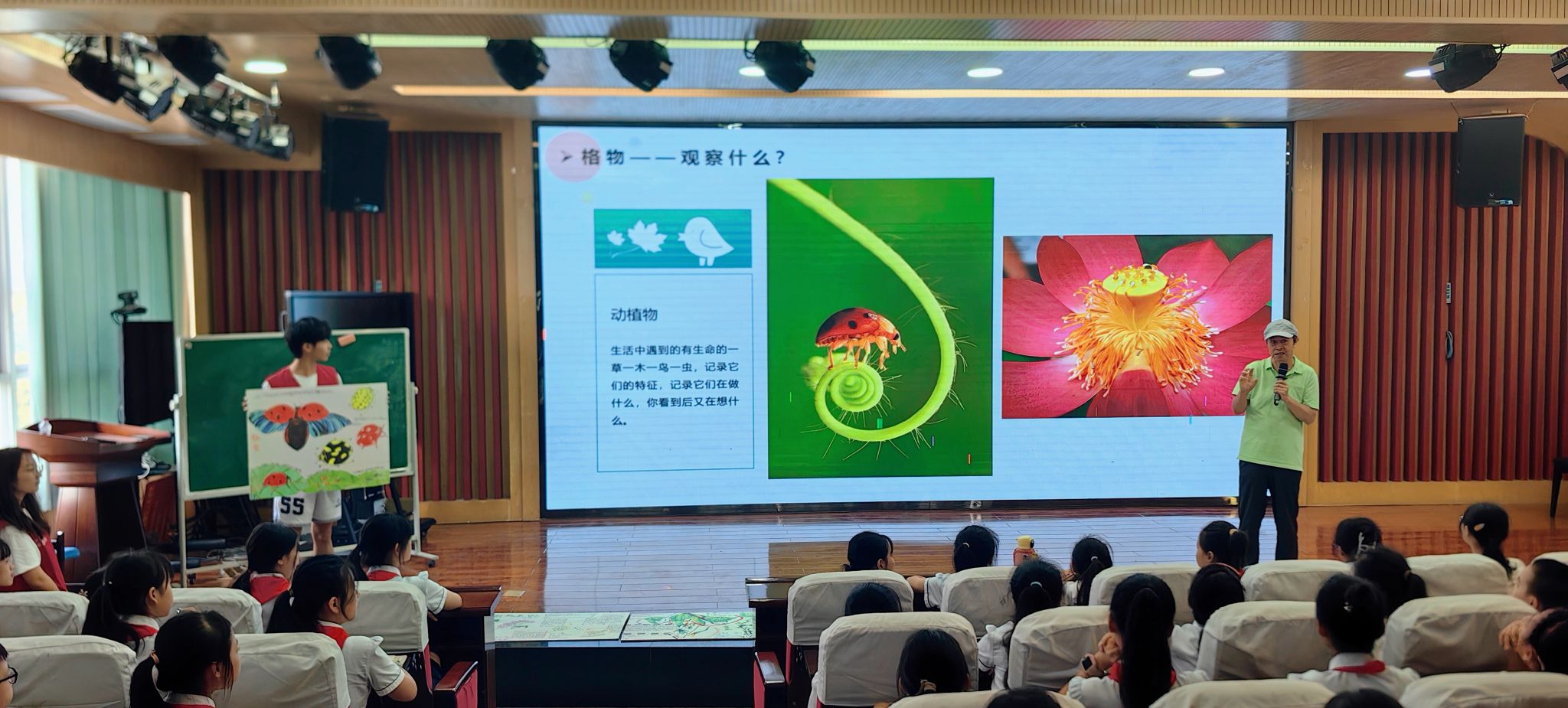 本次活动是响应中国科协、教育部、科技部、水利部、国家卫生健康委等21个部门共同举办2024年全国科普日,在全国各地集中开展活动(9月19日至25日)的号召而举办的。活动共分:1—3年级各班代表,4—6年级各班代表、城北小学附属幼儿园教师组三个批次,在城北小学会议厅举行,城北小学唐丹副校长主持了本次活动。活动中,来自驻市高校的专家和大学生志愿者给小学师生进行了“自然笔记基础知识”讲座、四川省及全国自然笔记优秀作品展示、自然笔记创作指导等。在互动环节,小学生们积极发言,并分享了各自对认识自然生态、保护自然环境的经历和心得。