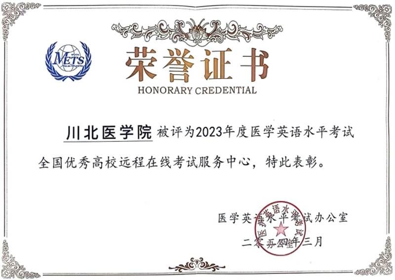 近日,国家医学英语水平考试办公室授予我校“2023年度全国优秀高校远程在线考试服务中心”荣誉称号。
