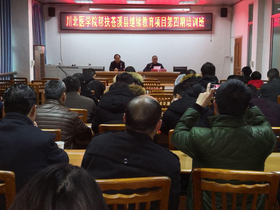 2018年12月27日,川北医学院帮扶苍溪县脱贫攻坚继续教育项目暨苍溪教学点2018级成教集中授课开班,学院附院消化内科主任医师任权教授担任本次授课,讲授了《胃炎、消化性溃疡、溃疡性结肠炎的规范诊治和进展》3个专题。
