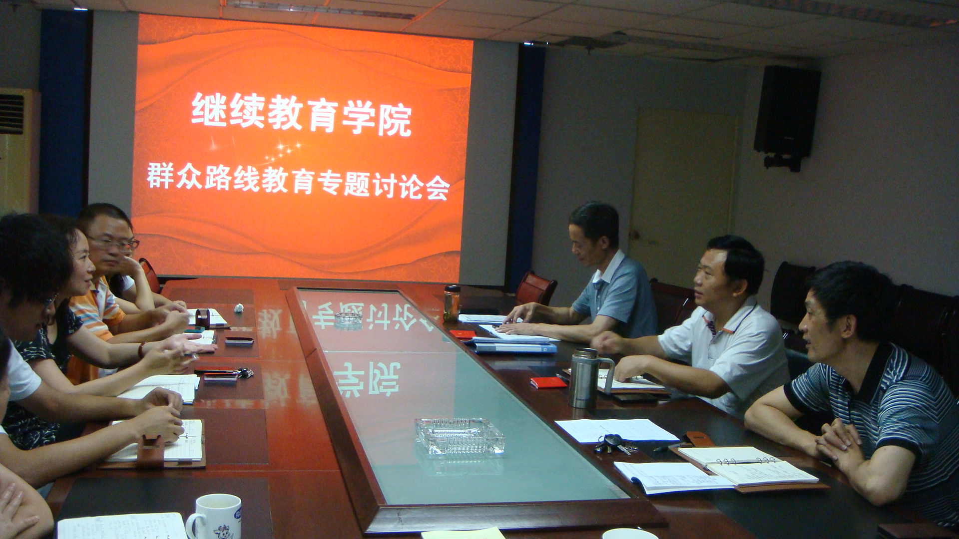 为贯彻落实学校党委关于开展党的群众路线教育实践活动精神,全力抓好活动的推进落实,继续教育学院于8月29日下午召开“群众路线怎么走”专题讨论会。研究生继续教育学院党总支书记胡红一主持会议,继续教育学院领导和全体党员参加讨论会。