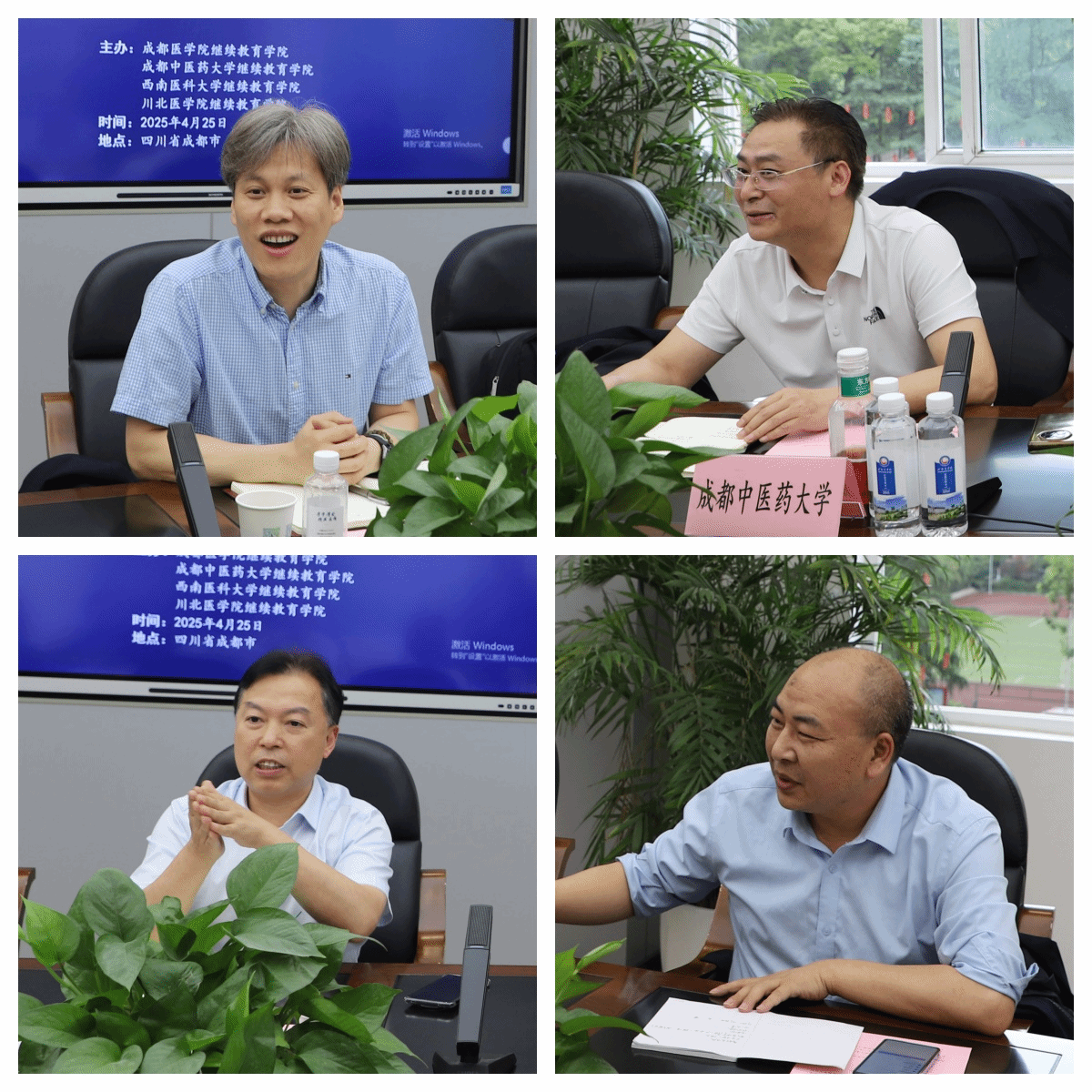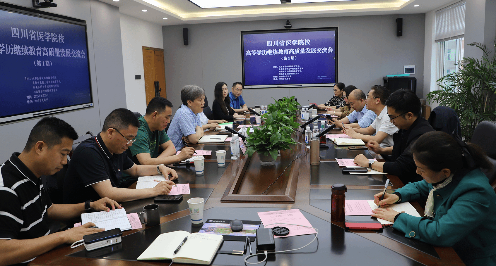 4月25日,四川省医学本科院校高等学历继续教育高质量发展交流会(第1期)在成都医学院天回校区召开。本次会议由成都中医药大学、西南医科大学、川北医学院、成都医学院继续教育学院共同发起,4所高校继续教育学院院长、副院长及相关科室负责人出席会议,会议由成都医学院继续教育学院院长王涛主持。