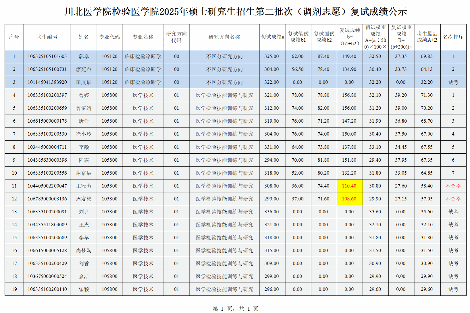 下一篇:检验医学院2025年硕士研究生入学考试第一批复试成绩公示