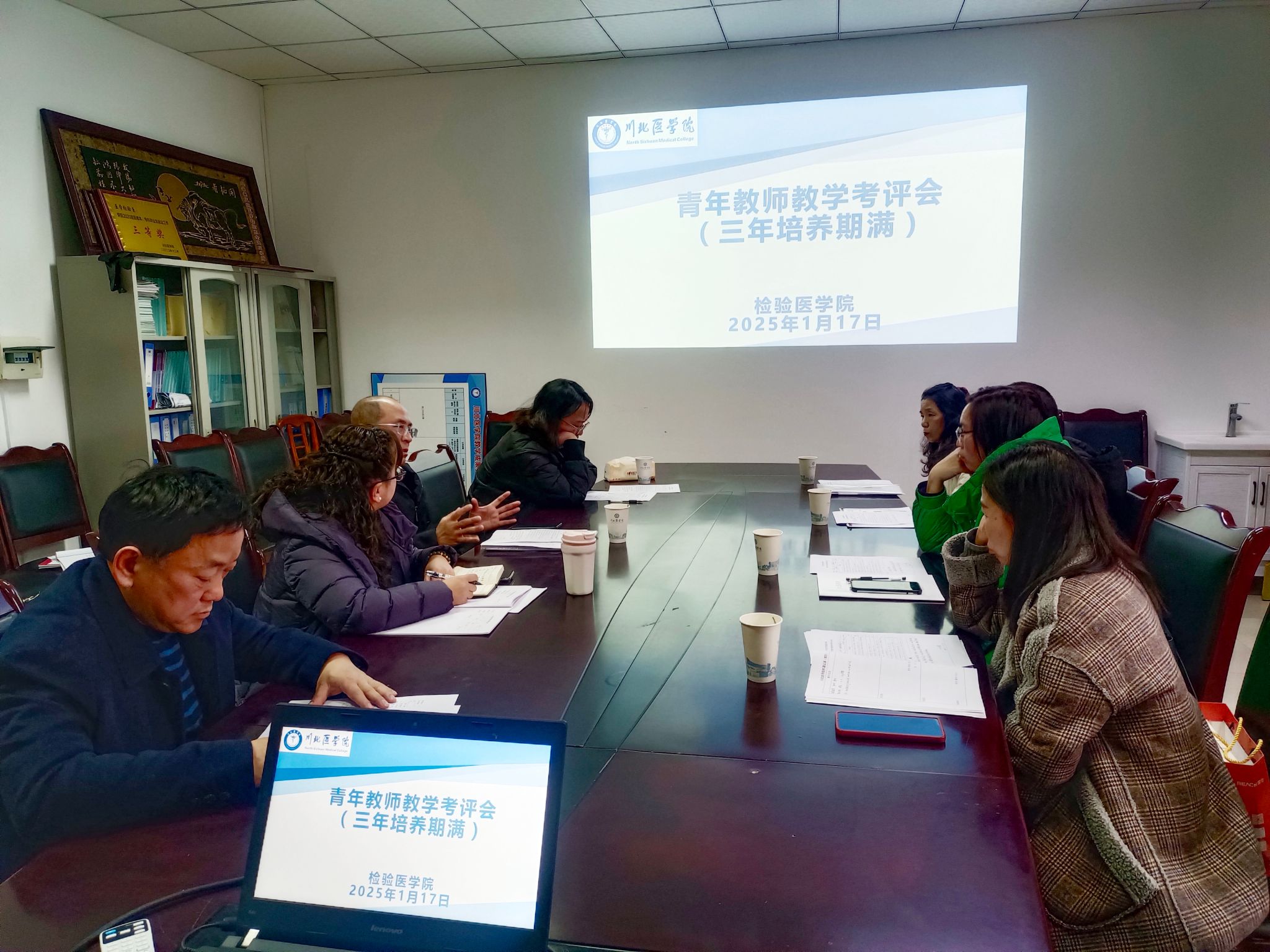 为进一步检验青年教师培养成效,严把培养质量关,近日检验医学院对三年培养期满的青年教师进行集中考核,学院副院长方莉主持考评会,学院教学督导组专家、教研室主任、课程负责人、附属医院检验科专业组负责人共同参与此次考评。